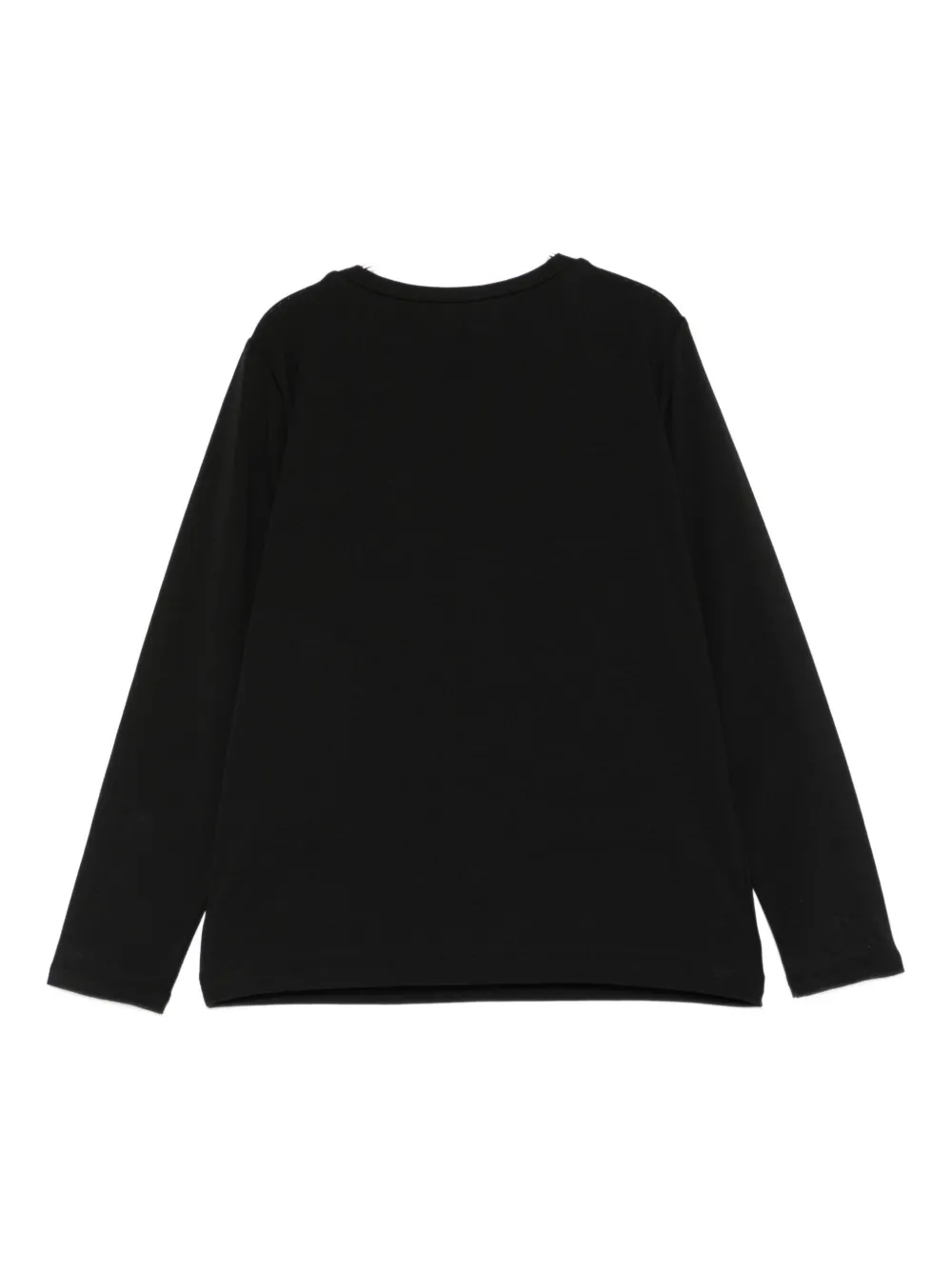 черный лонгслив с логотипом и круглым вырезом