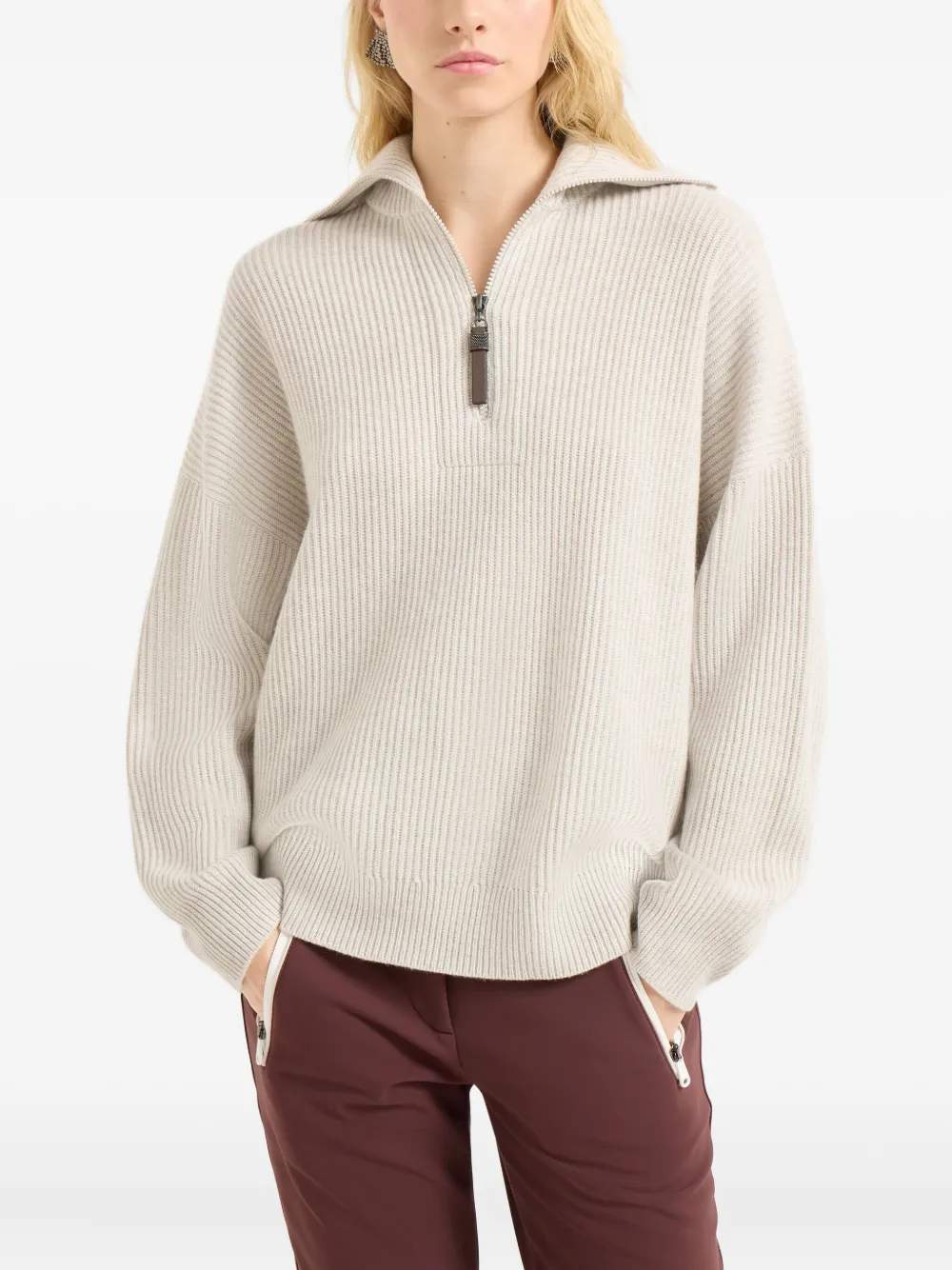 Свитер с воротником на молнии Brunello Cucinelli, нейтральный