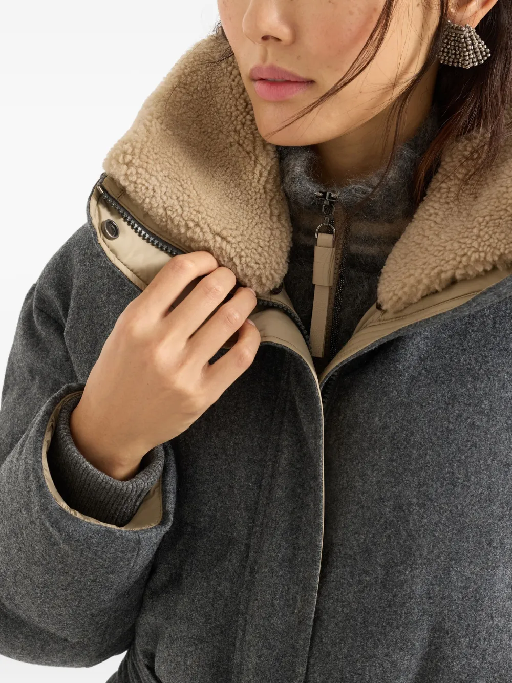 Пуховик с меховым воротником Brunello Cucinelli, серый