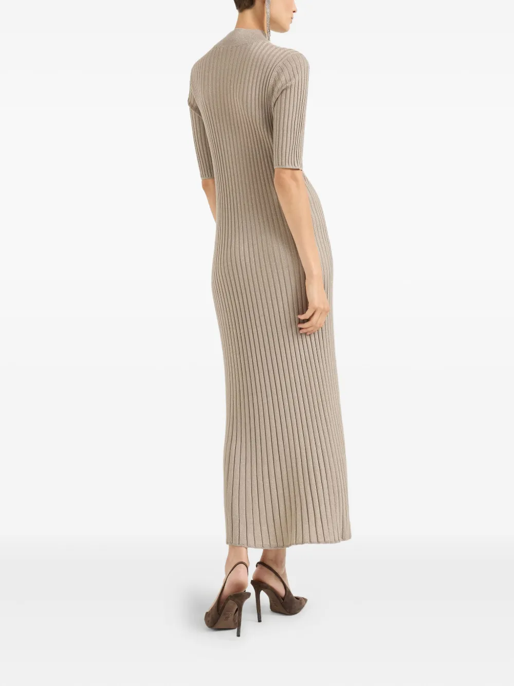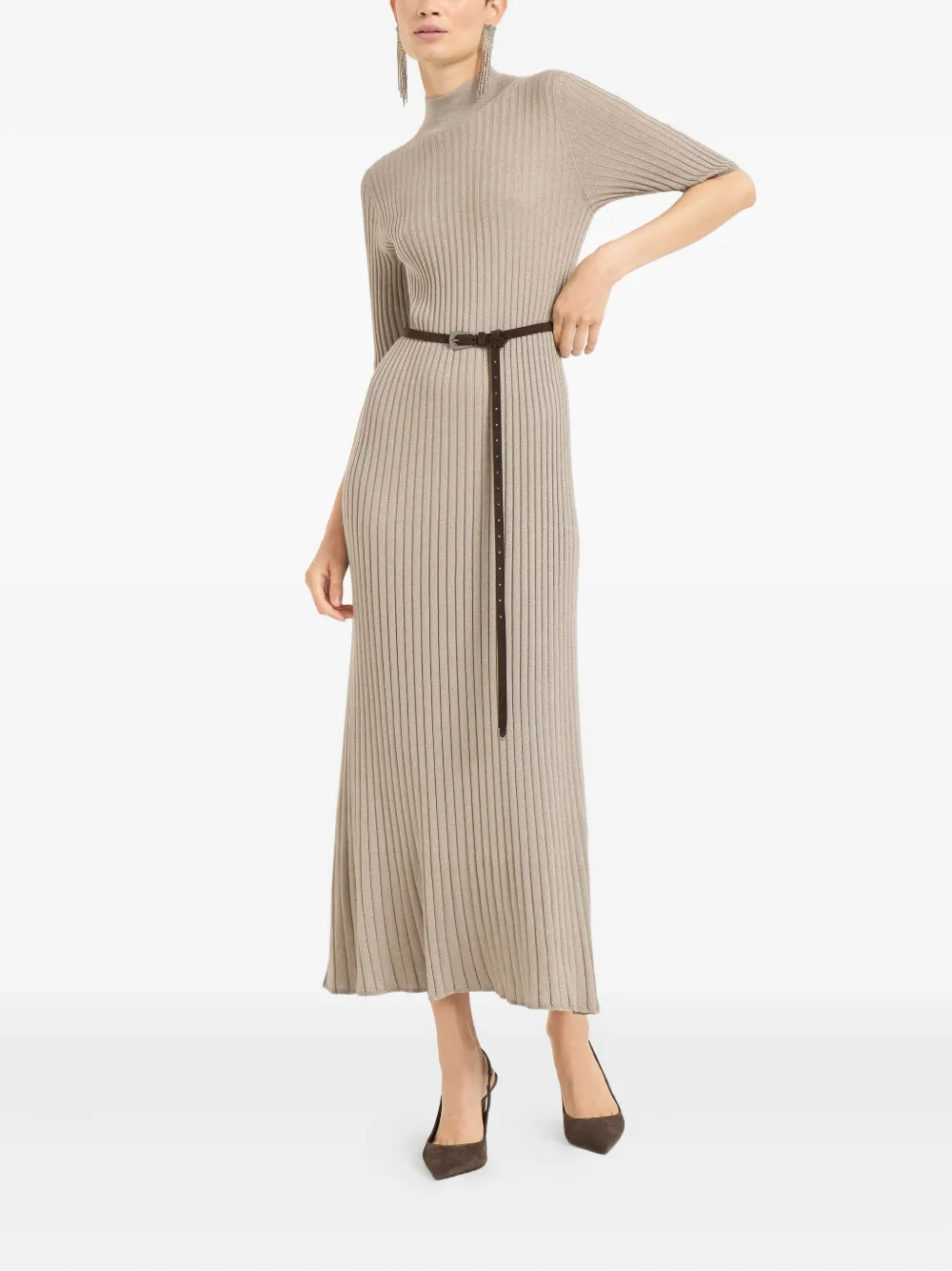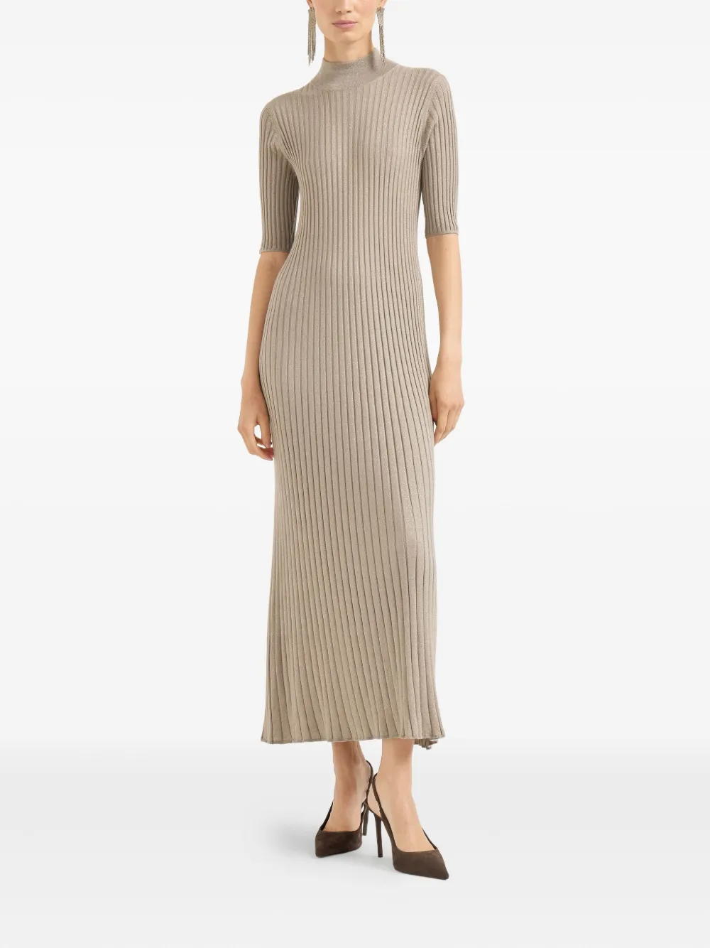 Платье миди с воротником-стойкой Brunello Cucinelli, бежевый