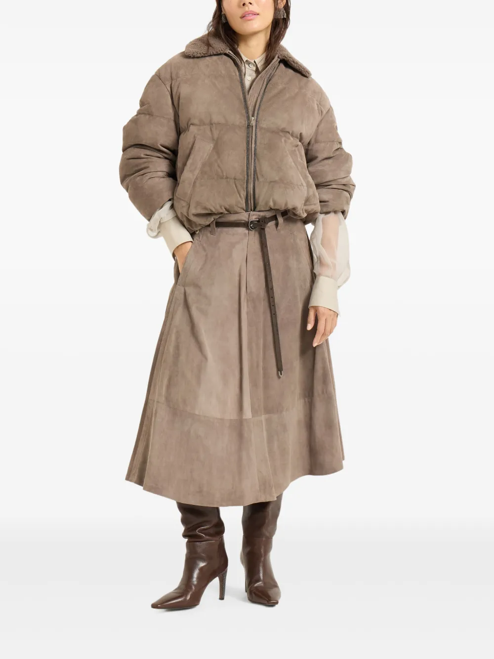 Замшевая юбка миди Brunello Cucinelli, коричневый