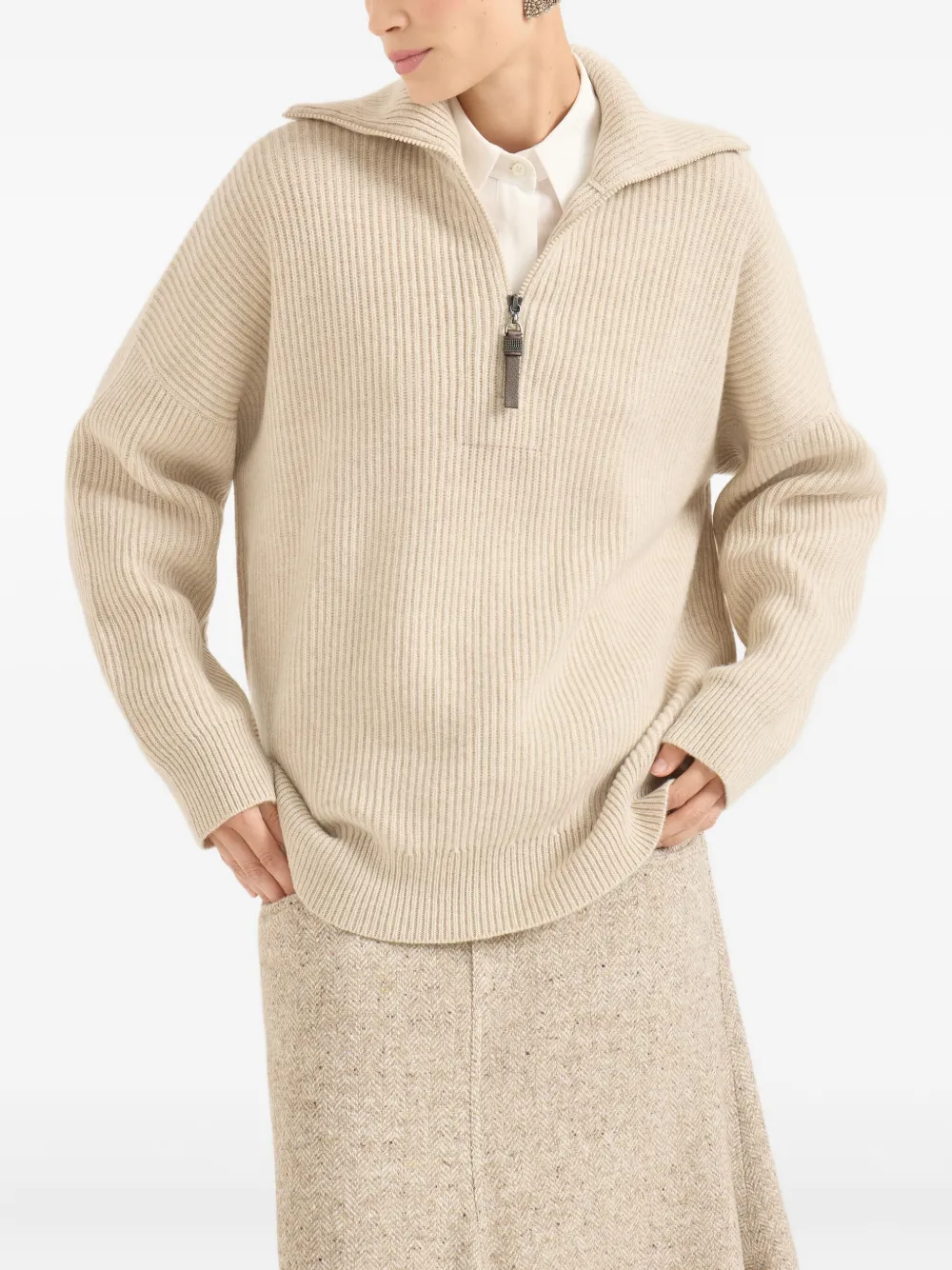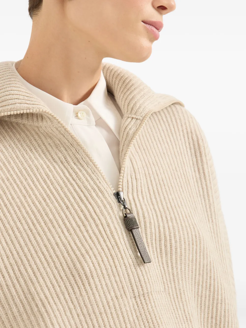 Свитер с воротником на молнии Brunello Cucinelli, бежевый