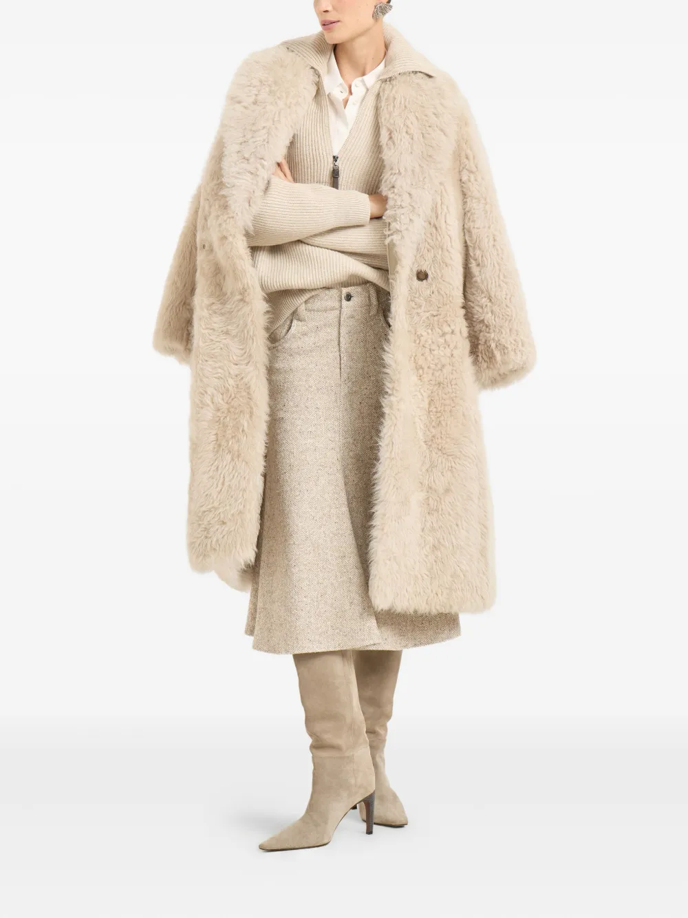 Свитер с воротником на молнии Brunello Cucinelli, бежевый 386 637₽