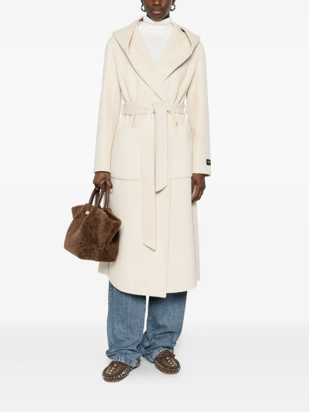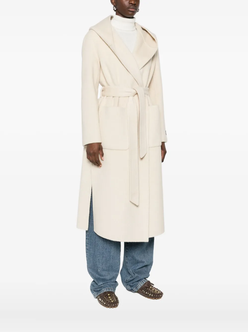 Пальто с капюшоном и поясом Ermanno Firenze, бежевый 111 010₽
