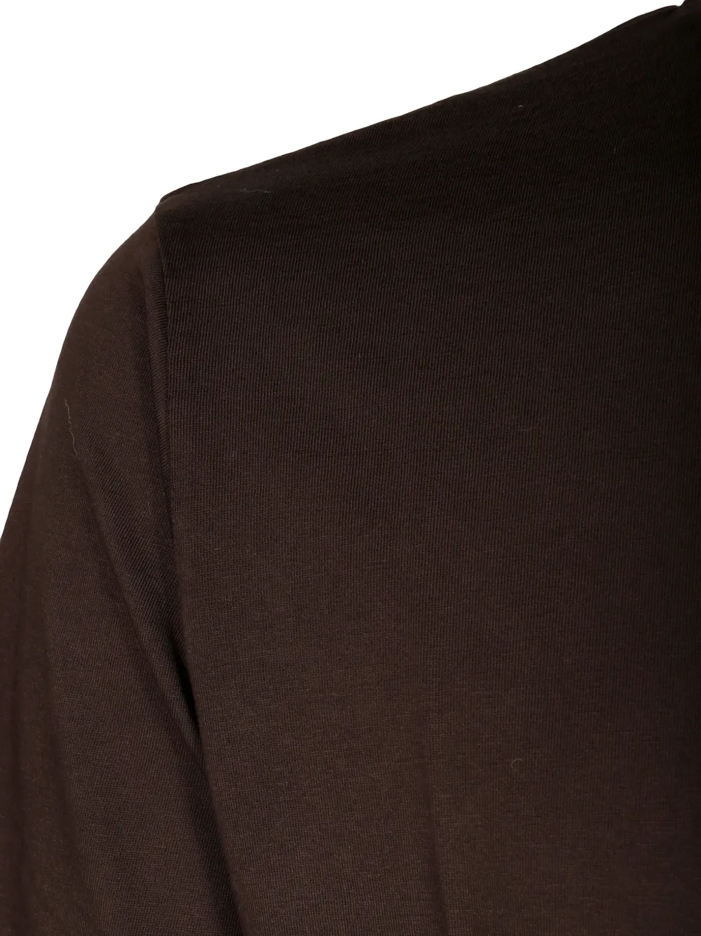 коричневая футболка с круглым вырезом, короткими рукавами и тональной строчкой