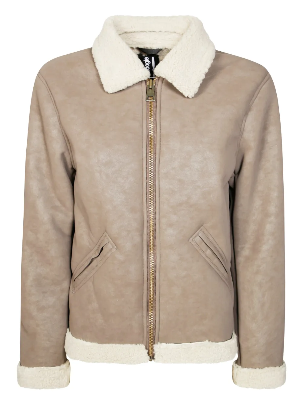 светло-коричневая куртка с эффектом овчины, застёжкой-молнией и передними карманами