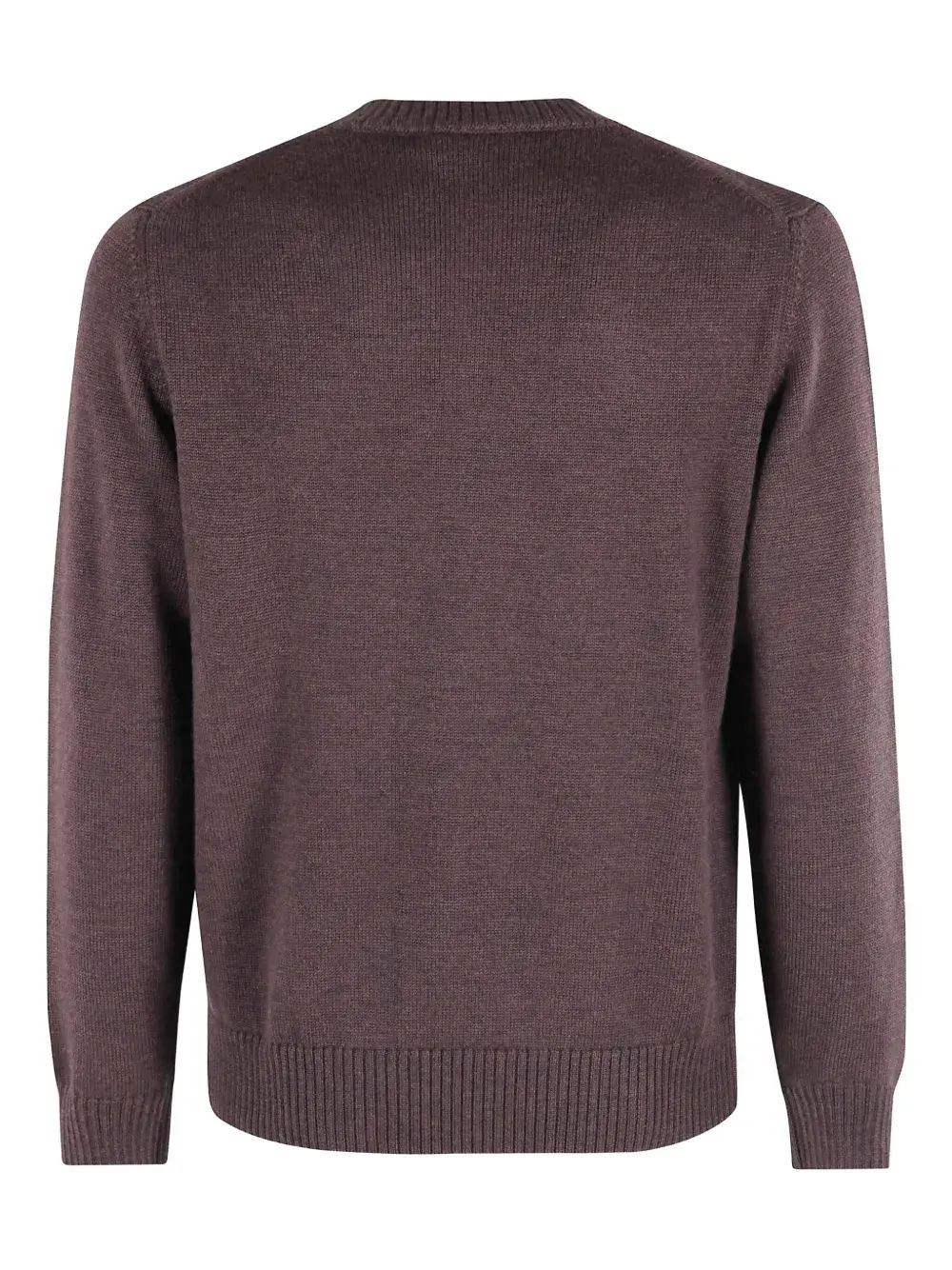 коричневый шерстяной свитер с круглым вырезом, ребристыми манжетами и нижним краем