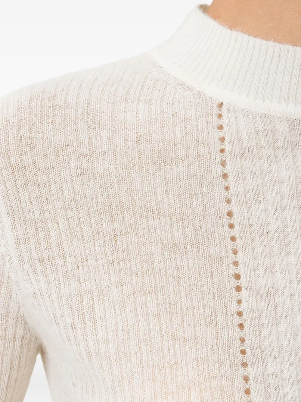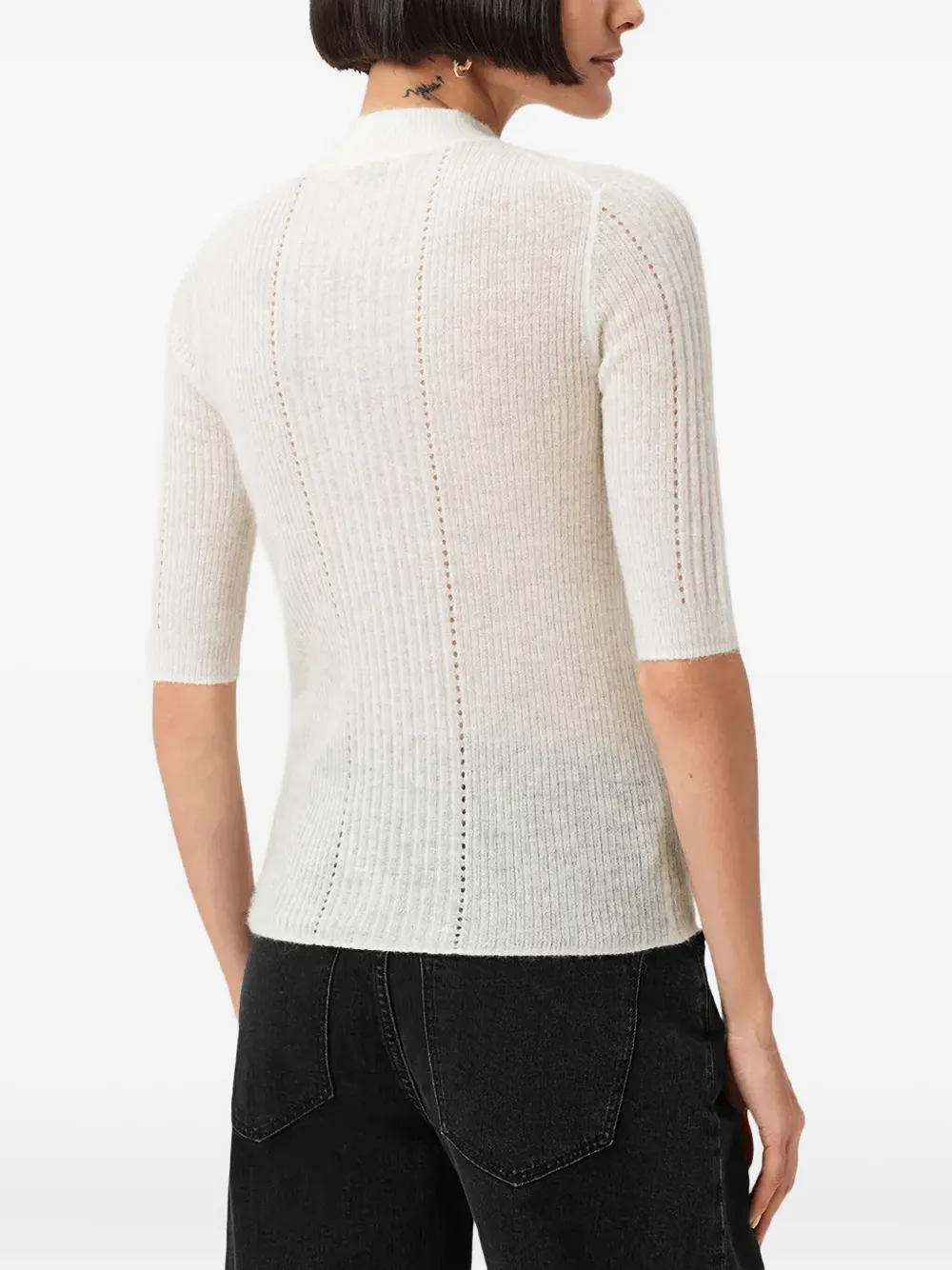 антикварного белого цвета, рубчатая вязка, высокий воротник, короткие рукава, прямой низ
