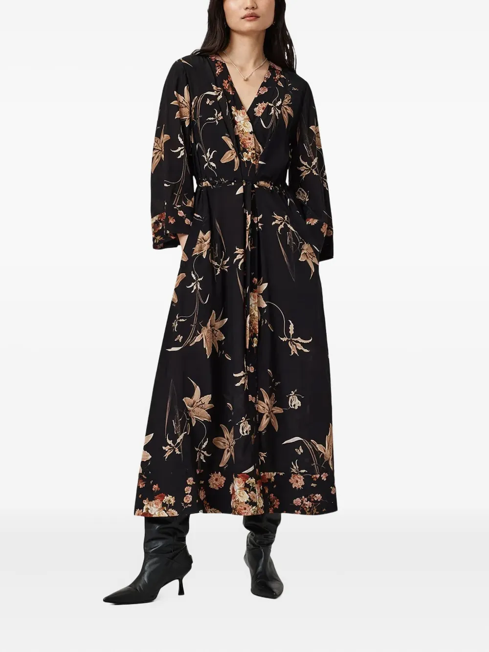 Платье миди Diana с цветочным принтом Allsaints, черный