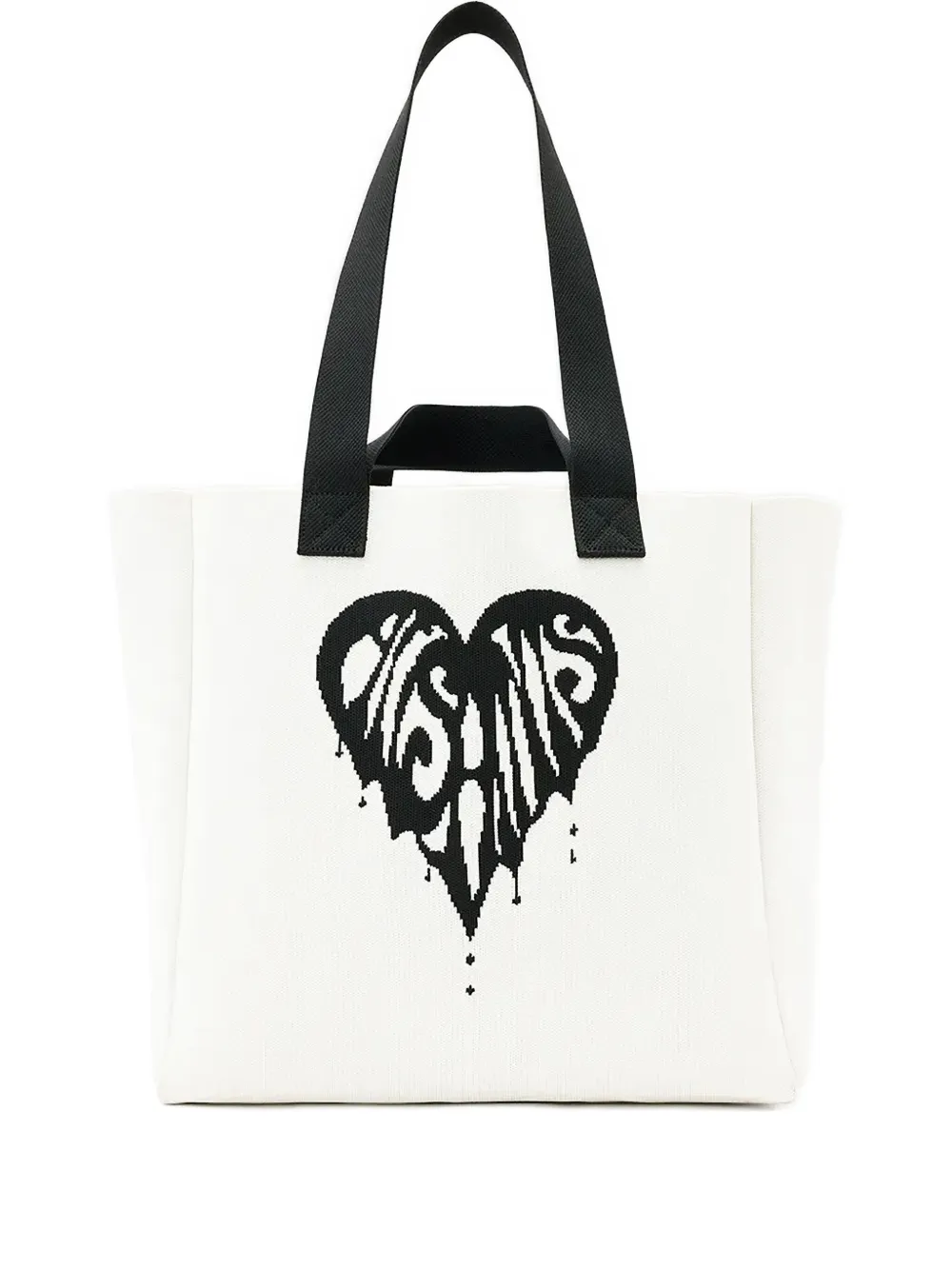 белая сумка с верхней ручкой, с графическим изображением сердца, жаккардовой отделкой и фирменным логотипом