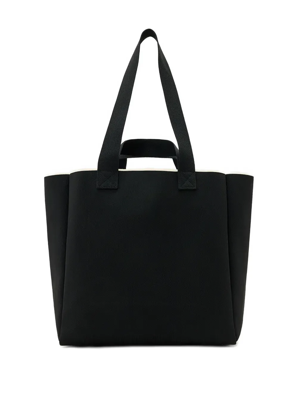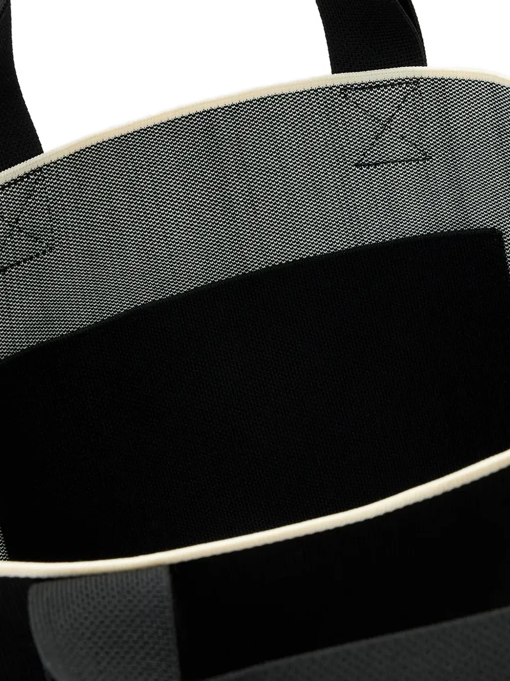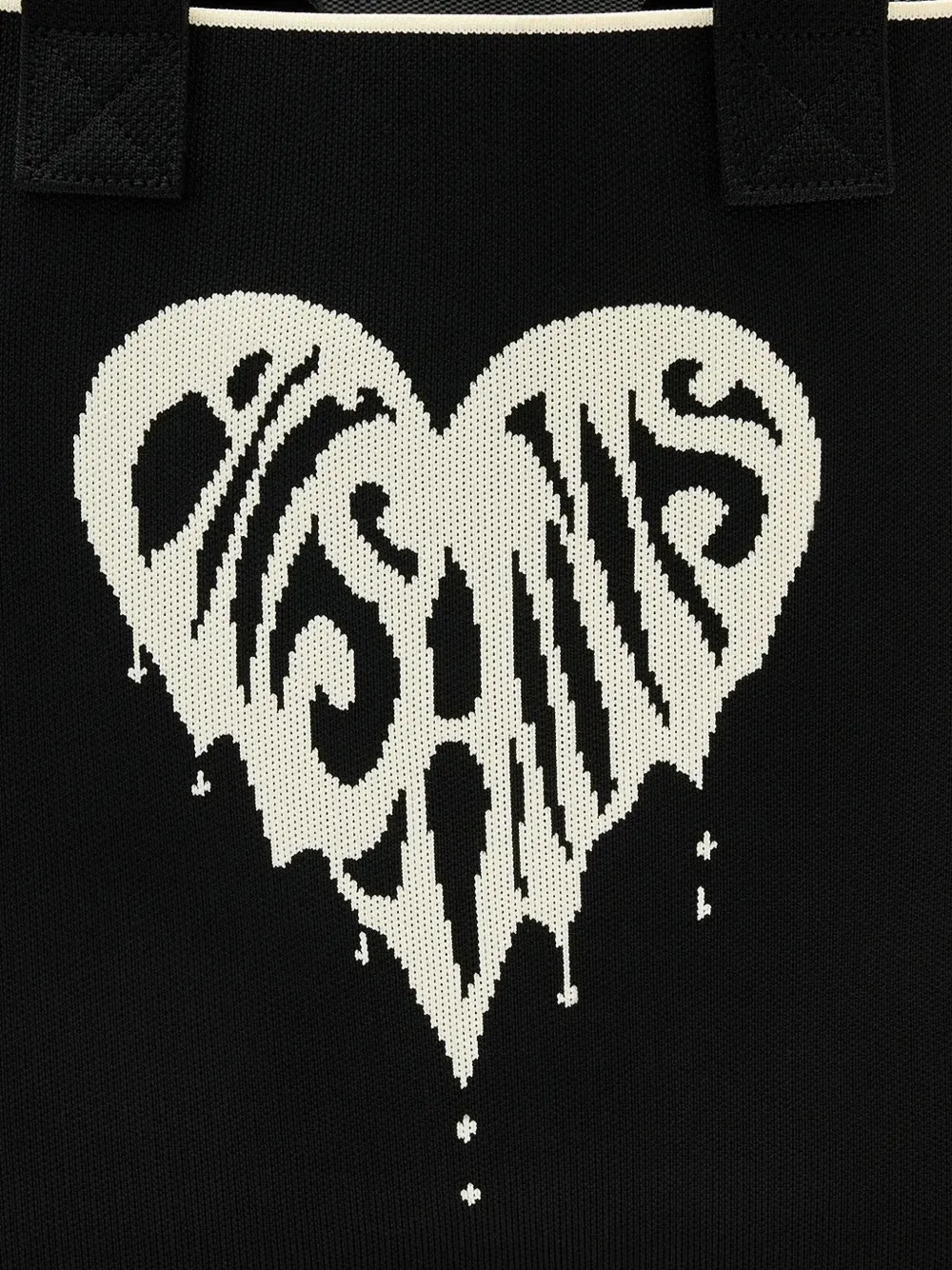 черная сумка с графическим изображением сердца, верхней ручкой и внутренним открытым карманом