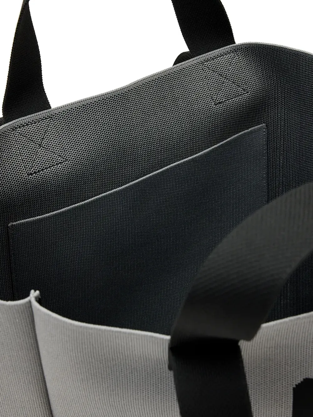 серый топ с ручками, логотипом и внутренним накладным карманом