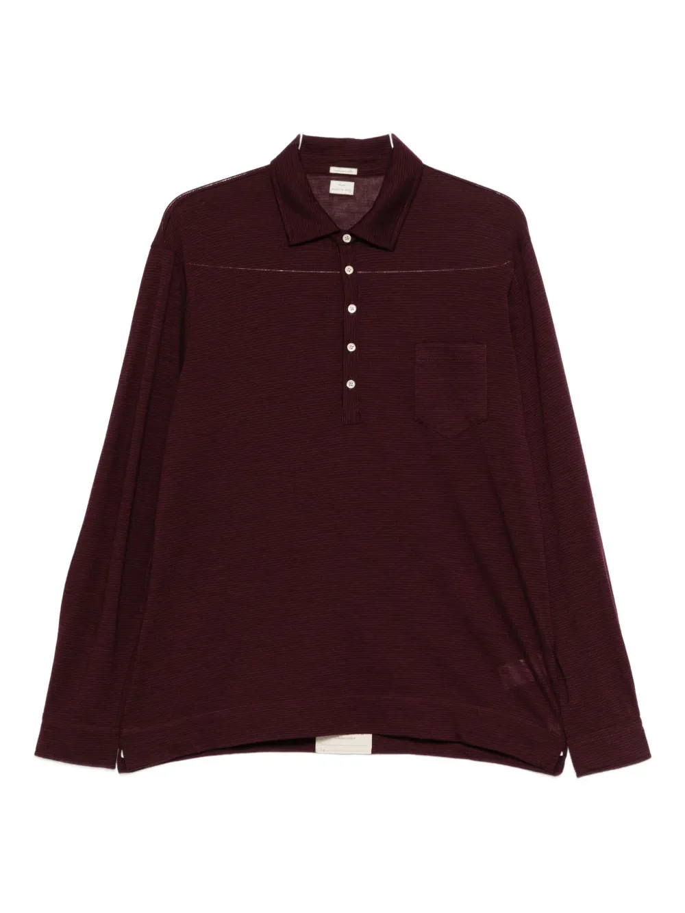 темно-красный тонкий трикотаж, нагрудный карман, застежка на пуговицах, длинные рукава, прямой низ