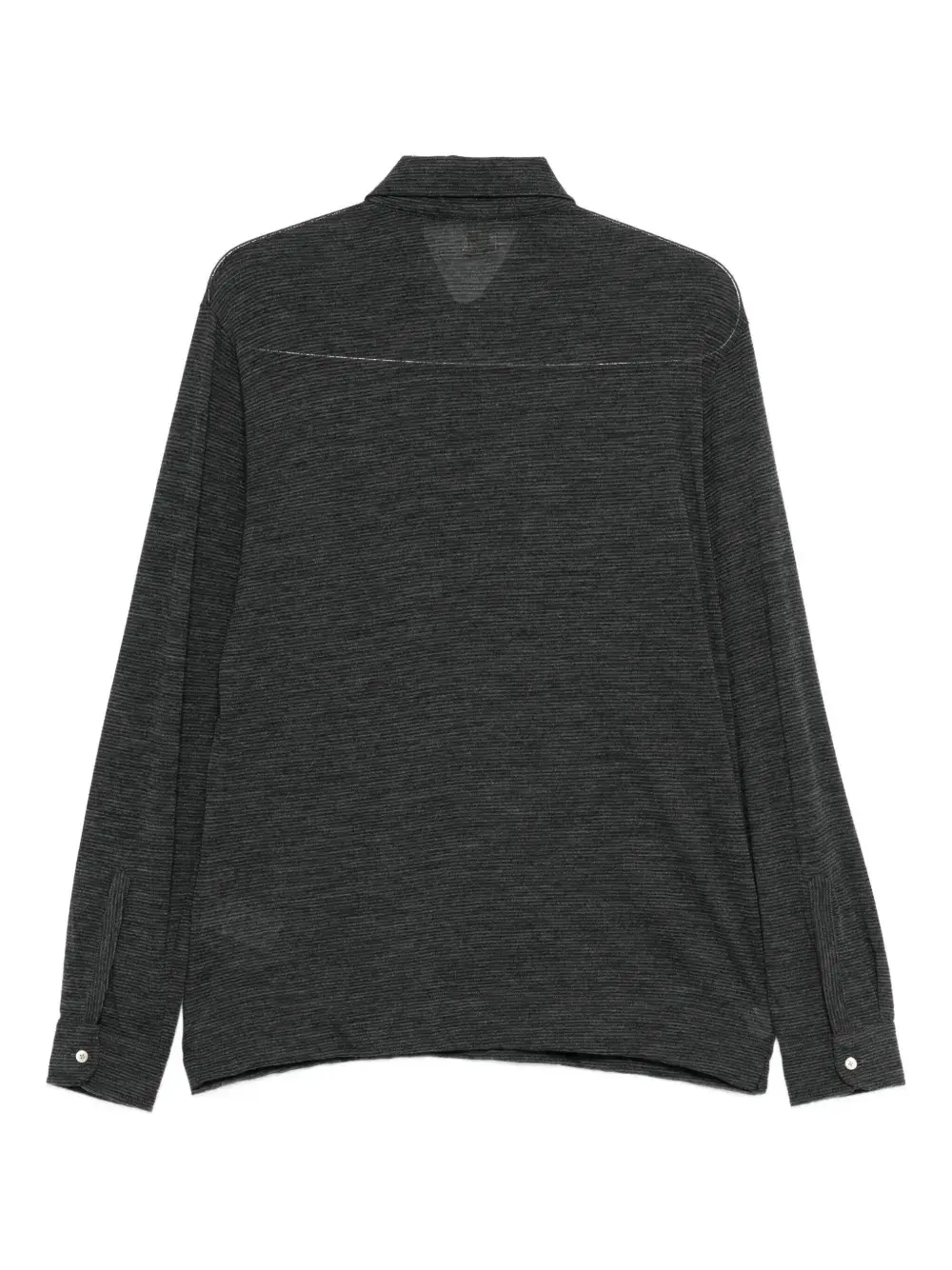 серый цвет, застёгивается на пуговицы, нагрудный карман, длинные рукава, манжеты на пуговицах, горизонтальный полосатый узор