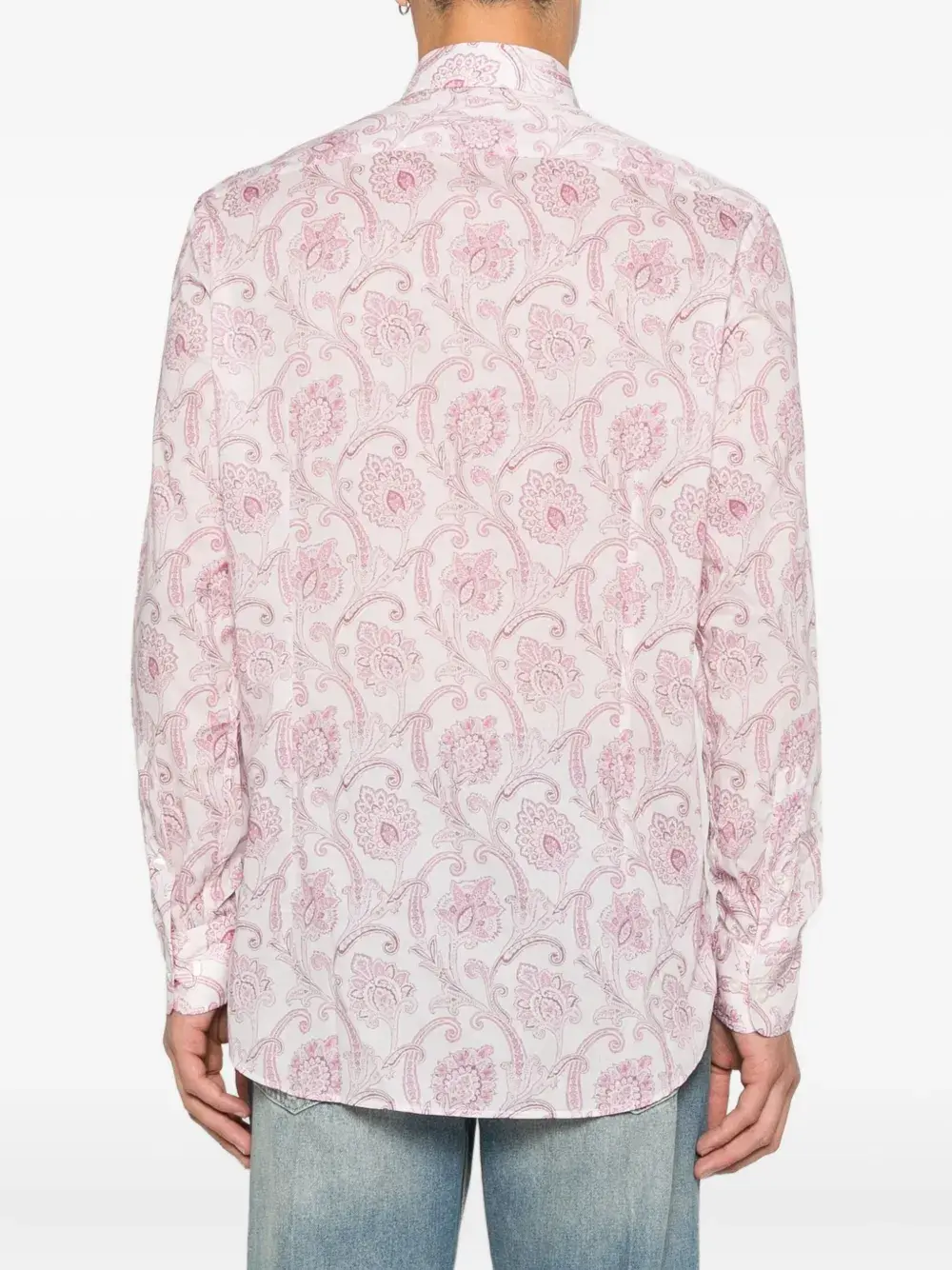 светло-розовая рубашка с узором "пейсли", застёжкой на пуговицы, длинными рукавами, манжетами на пуговицах и изогнутым подолом