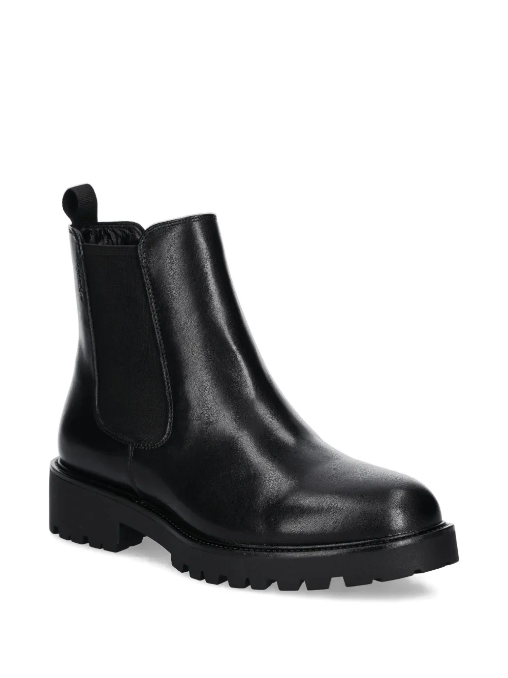 черная массивная подошва, петля на пятке, эластичные боковые вставки, круглый носок, длина до щиколотки