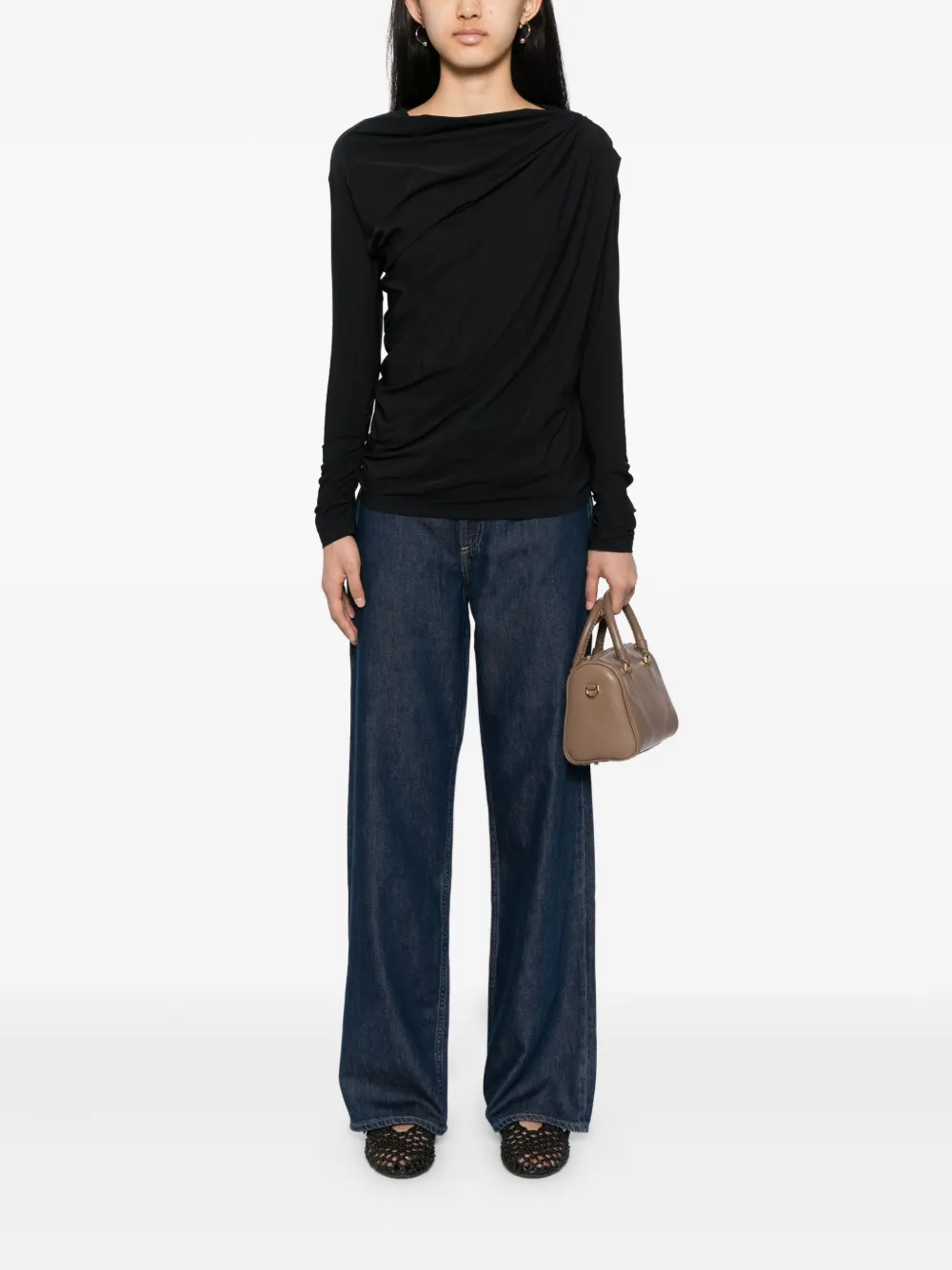 широкий крой: джинсы плотно сидят на талии, но не облегают ноги