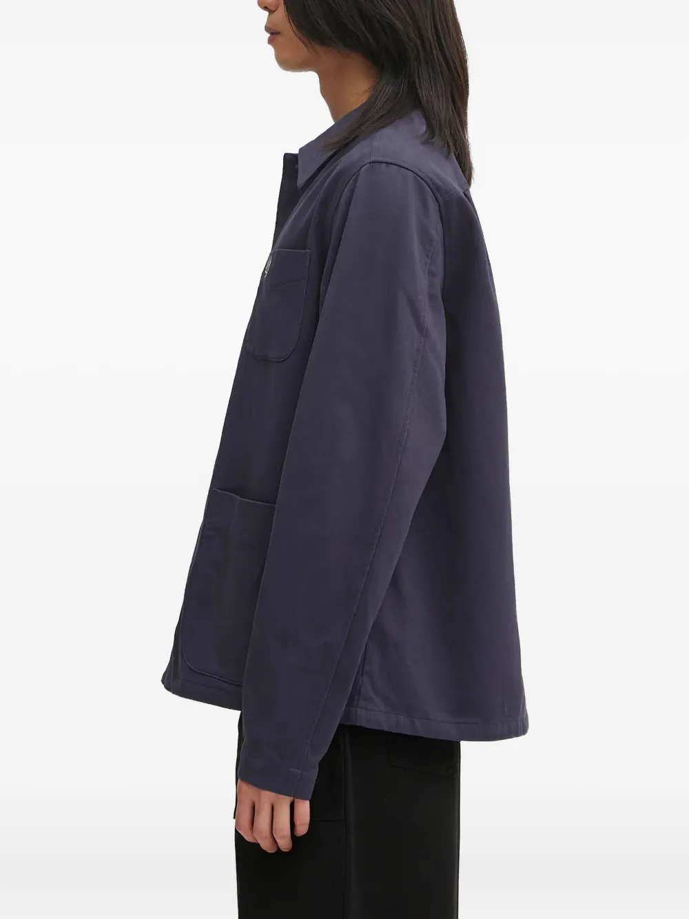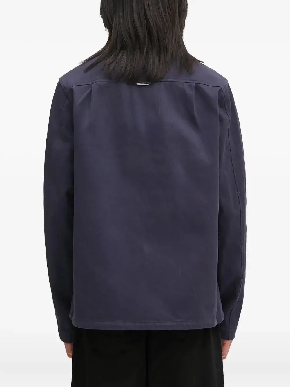 синий, накладные карманы, застёжка на пуговицы, воротник поло, длинные рукава, вышитый логотип