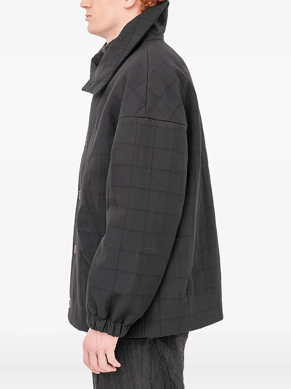 черная стеганая куртка с клетчатым узором, застежкой на пуговицы, эластичными манжетами и передними карманами
