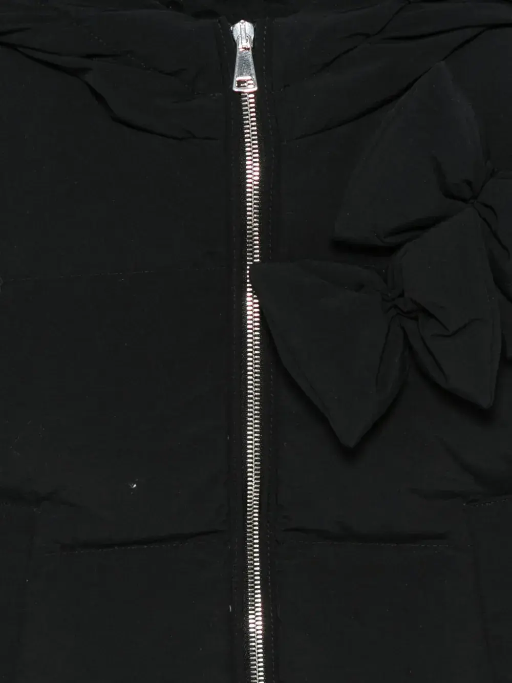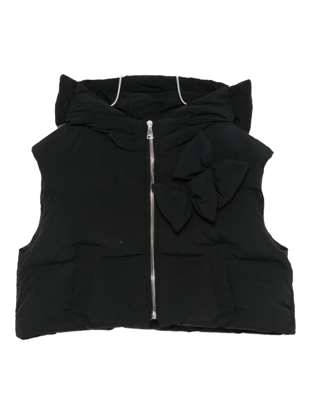 черная стеганая безрукавка с капюшоном, украшенная бантом, на молнии