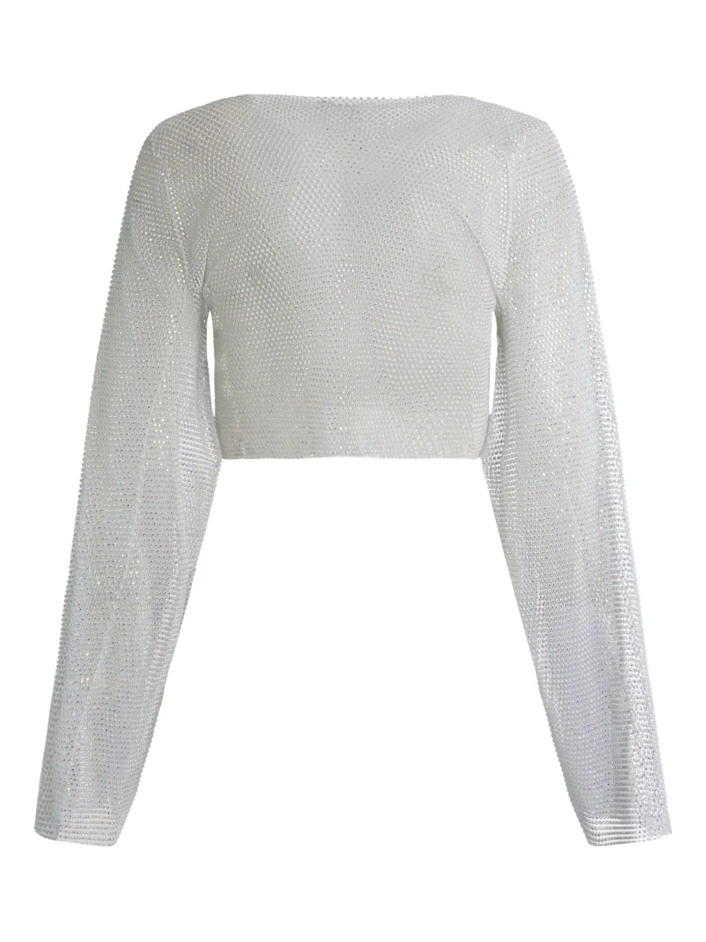 белый топ с украшением из страз, круглым вырезом и длинными рукавами