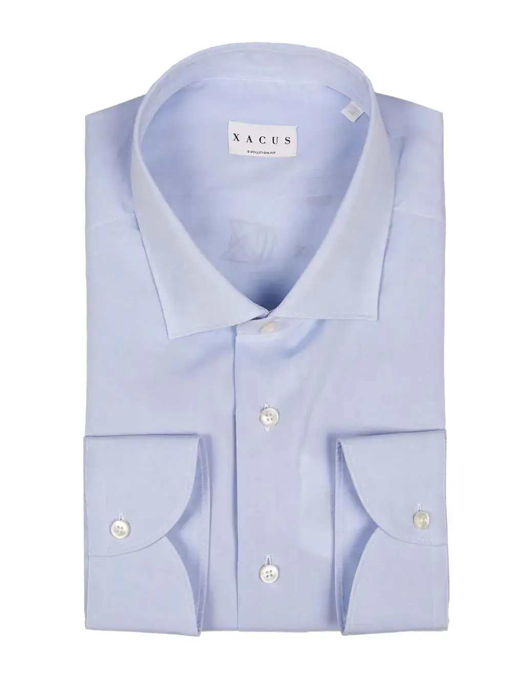 светло-голубая рубашка из хлопка с застежкой на пуговицы, длинными рукавами, манжетами на пуговицах и классическим воротником