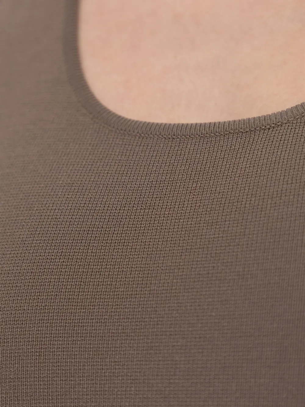 коричневый топ без рукавов с круглым вырезом, тональная строчка, облегающий крой, эластичный материал, напоминаем, что эту вещь необходимо примерять поверх собственной одежды