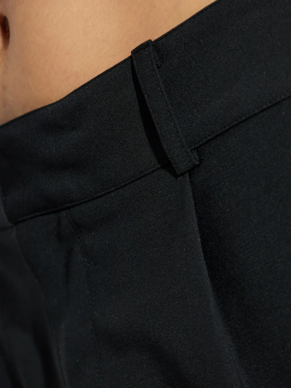 черные шлевки для ремня, складки, боковые карманы в шве, задние прорезные карманы