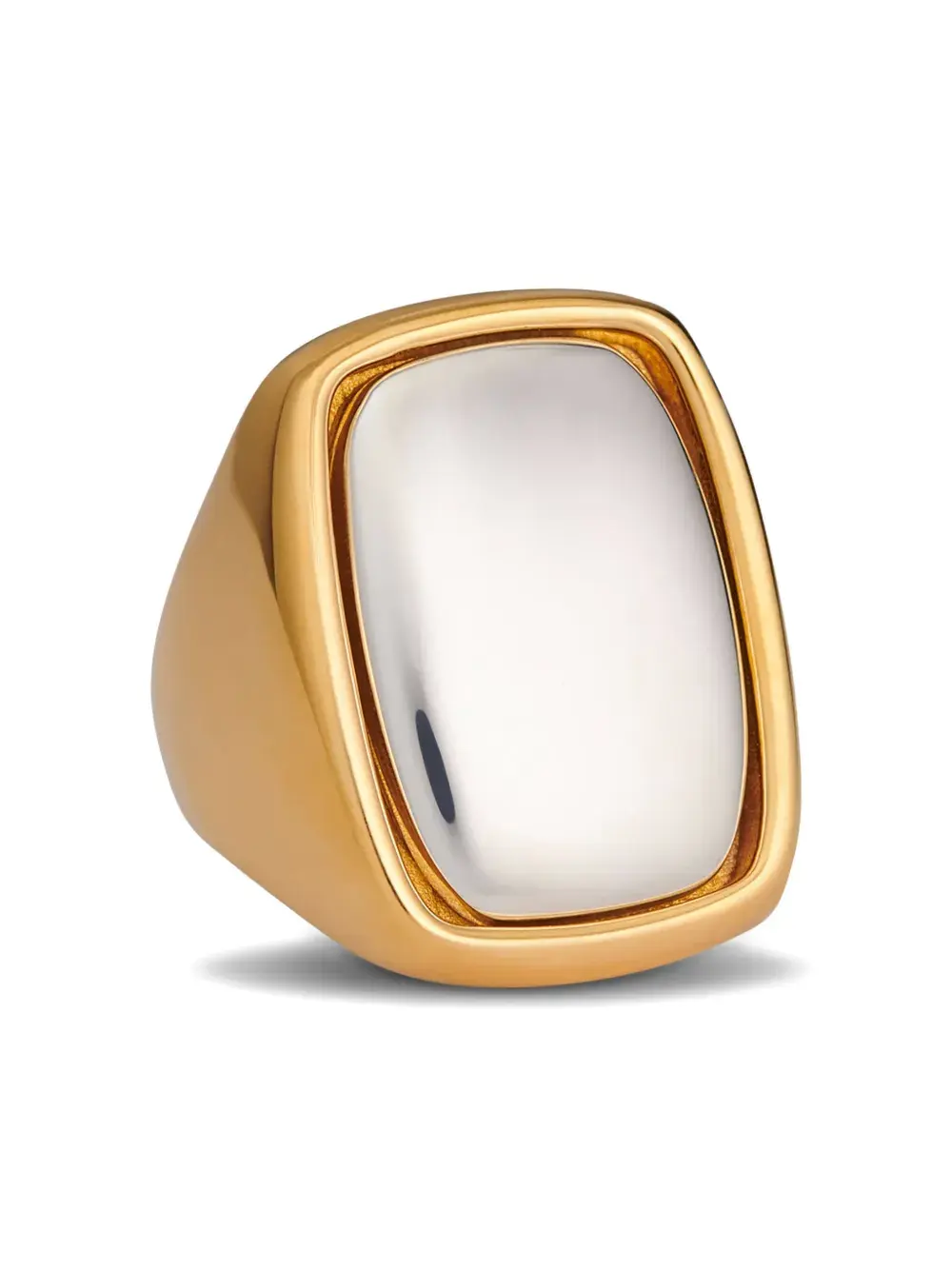 Золотистый цвет, прямоугольный корпус, полированная поверхность