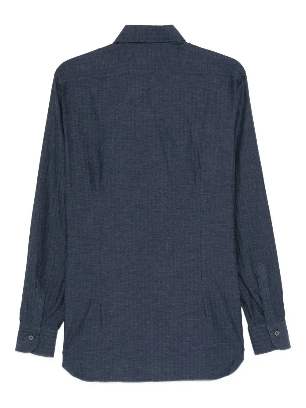 синий, застежка на пуговицы, длинные рукава, манжеты на пуговицах, текстурированный