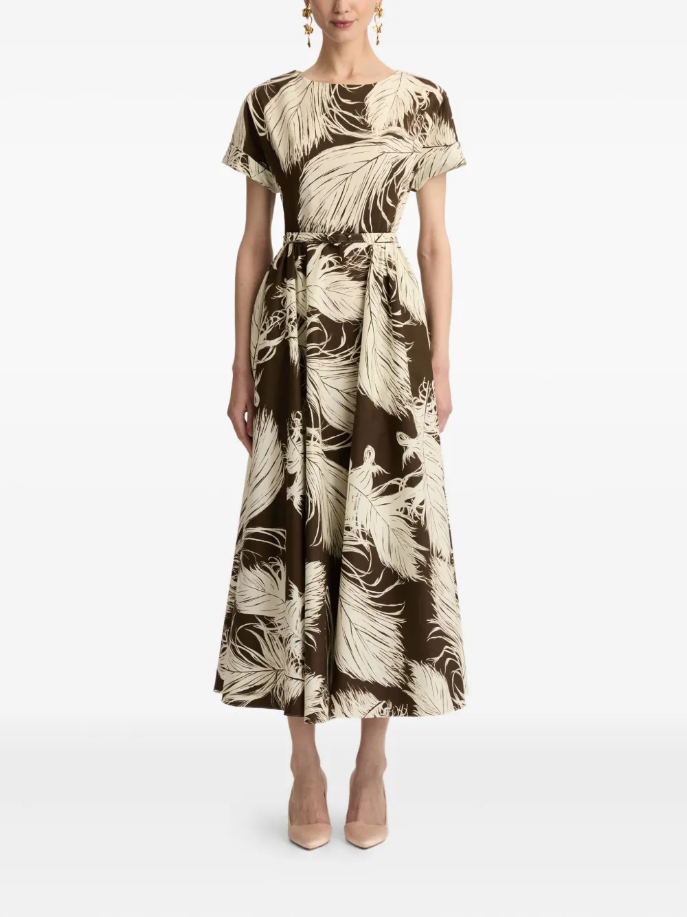 Поплиновое платье с принтом Oscar De La Renta, коричневый