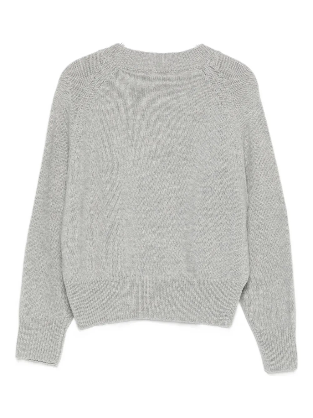 Серый джемпер с интарсией в виде дерева, круглым вырезом, длинными рукавами, ребристым подолом и манжетами