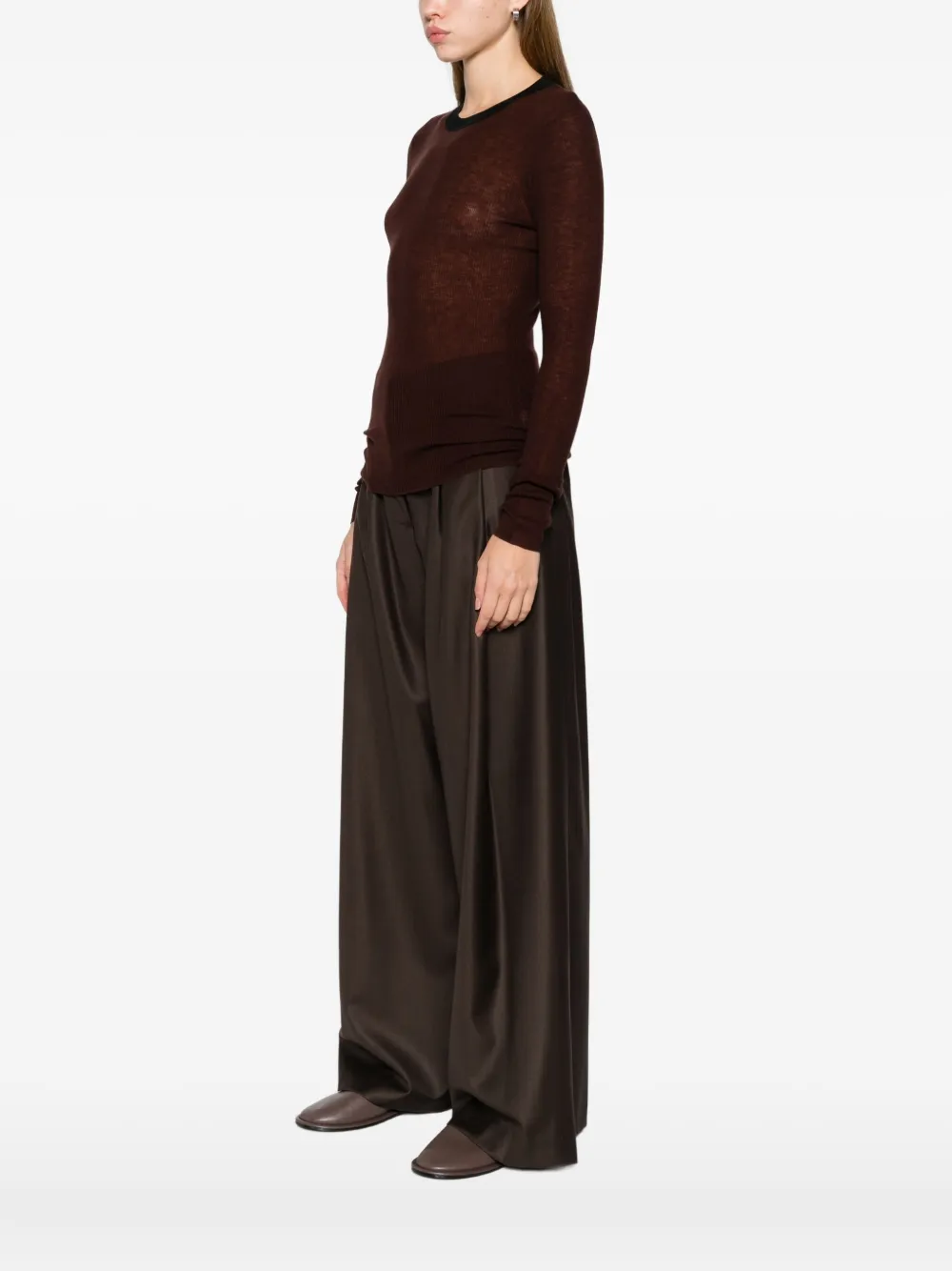 Джемпер с полосатыми деталями 6397, коричневый
