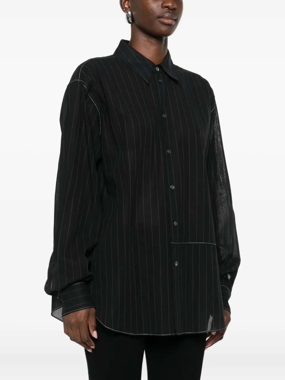 Прозрачная рубашка в тонкую полоску 6397, синий