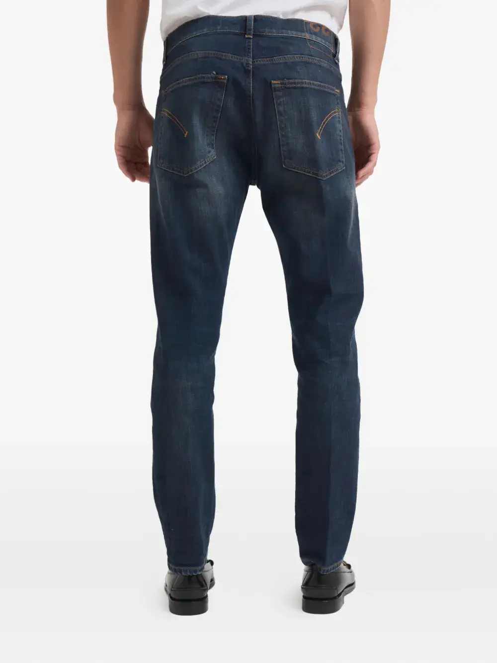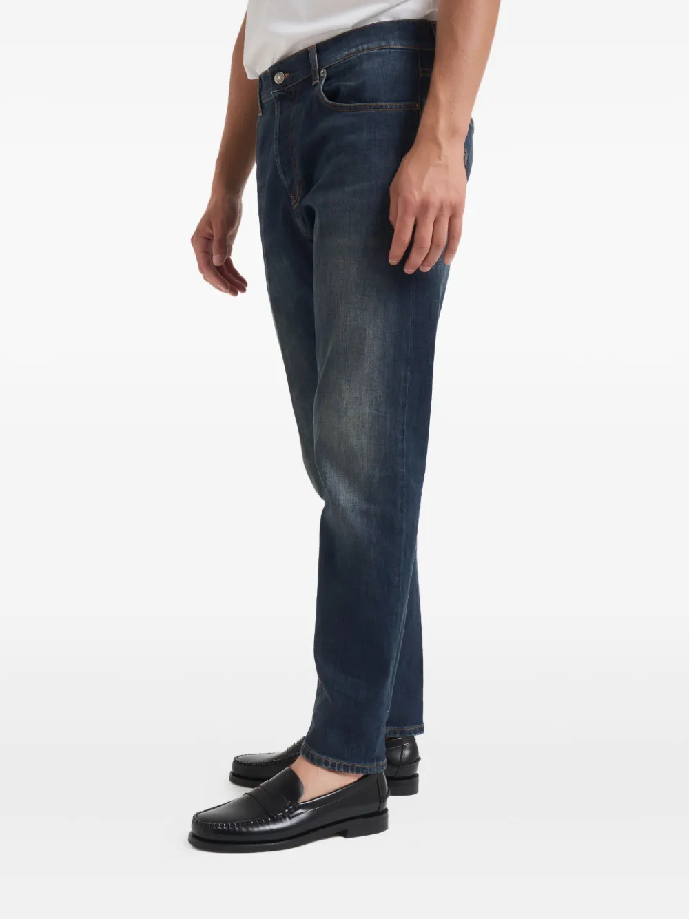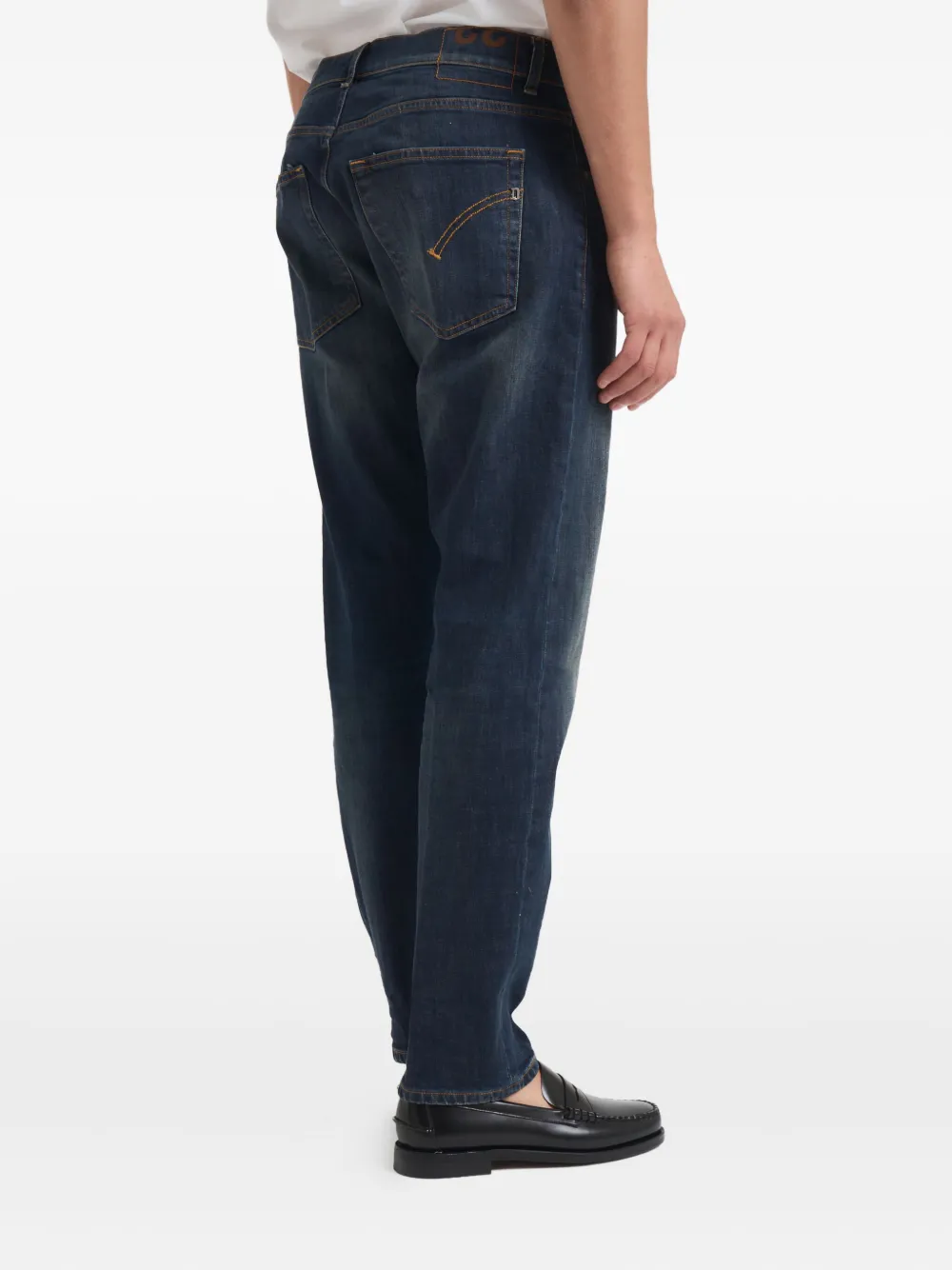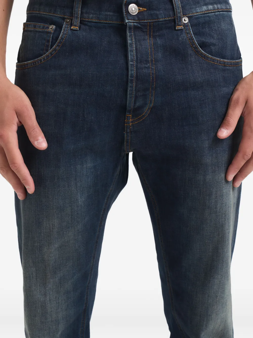 синий классический дизайн с пятью карманами, контрастная строчка, застежка на пуговицу, шлевки для ремня, принт с логотипом сзади
