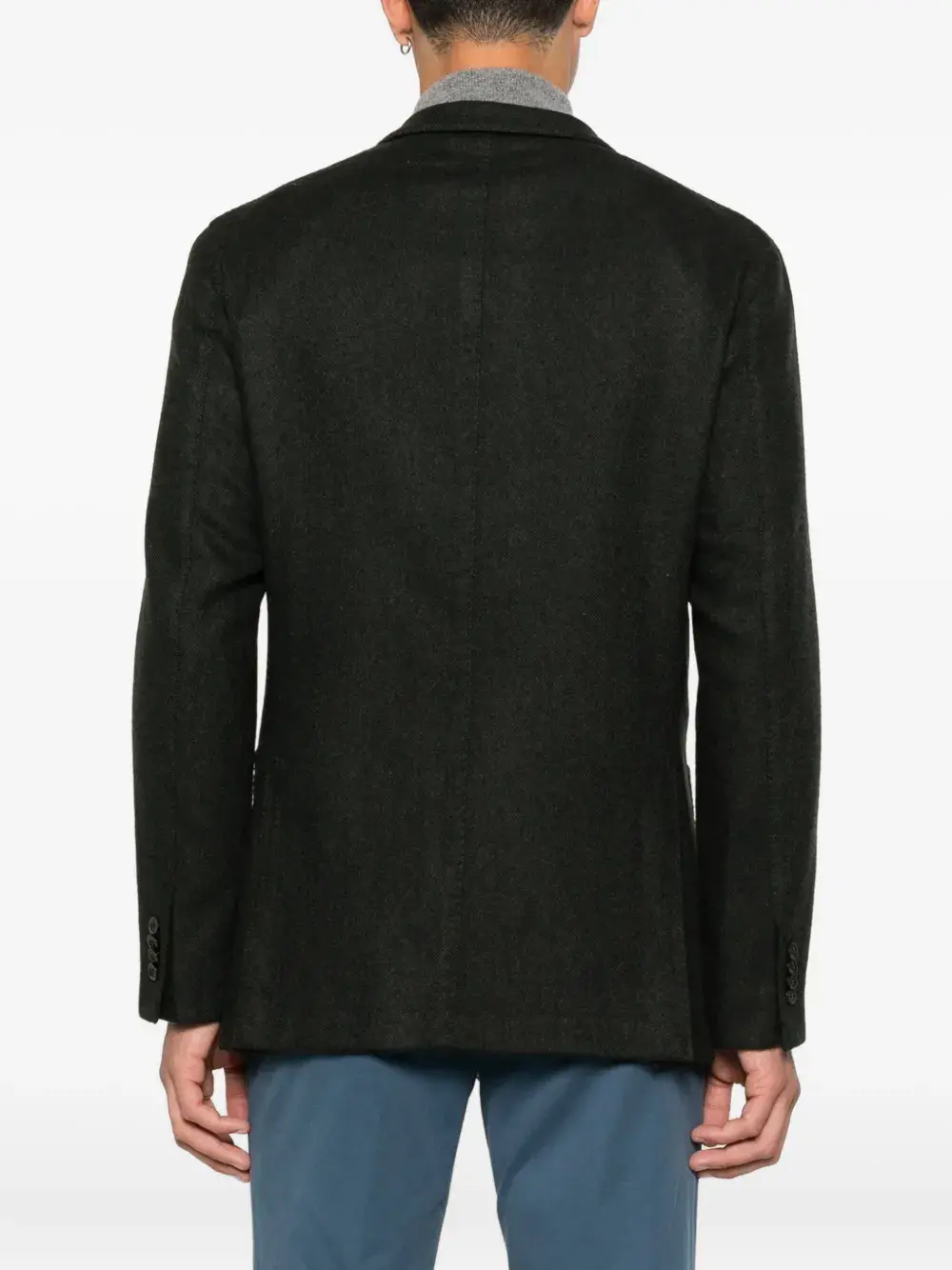 темно-серый, застёжка на пуговицы спереди, накладные карманы спереди, лацканы с острыми концами