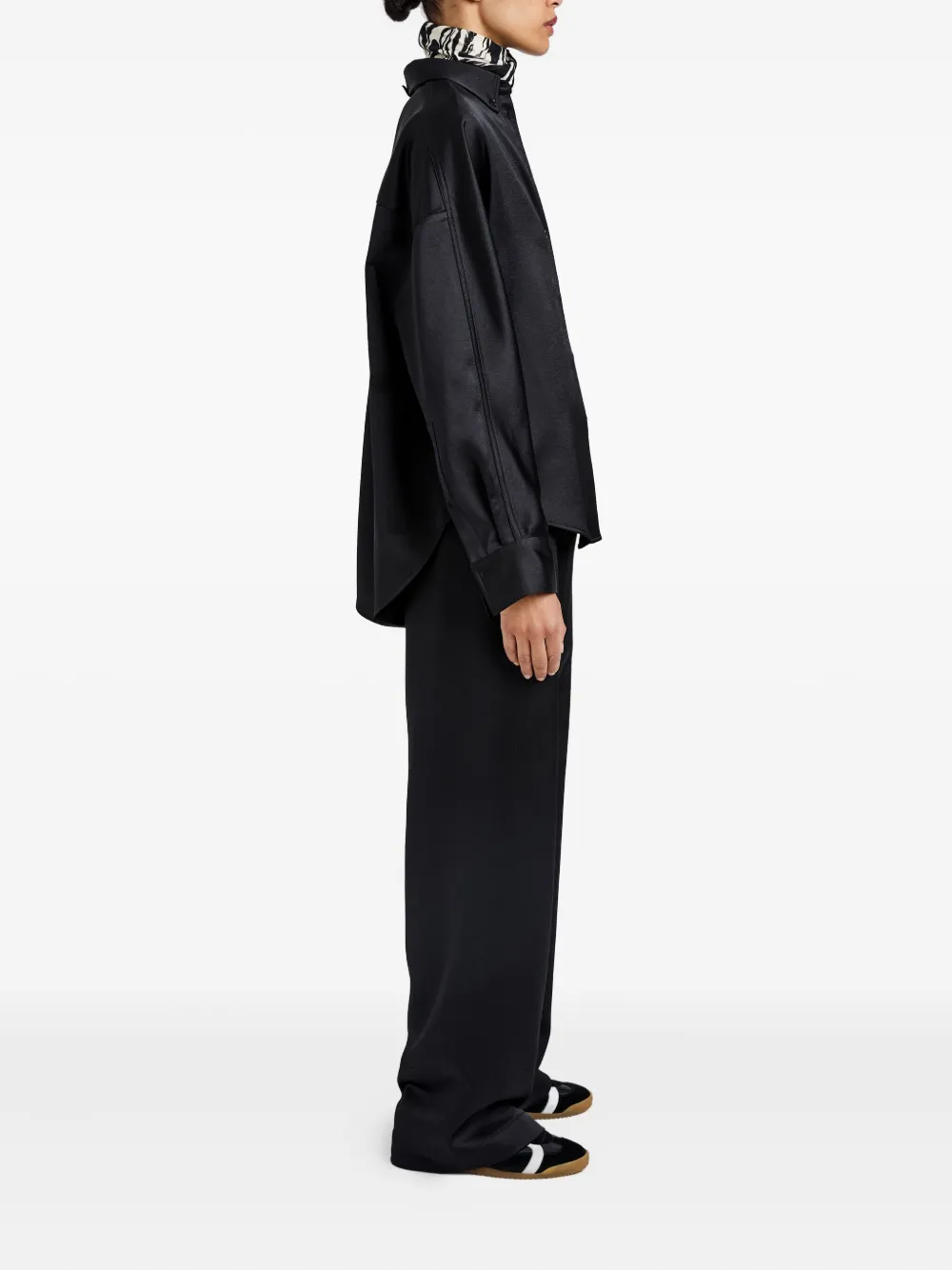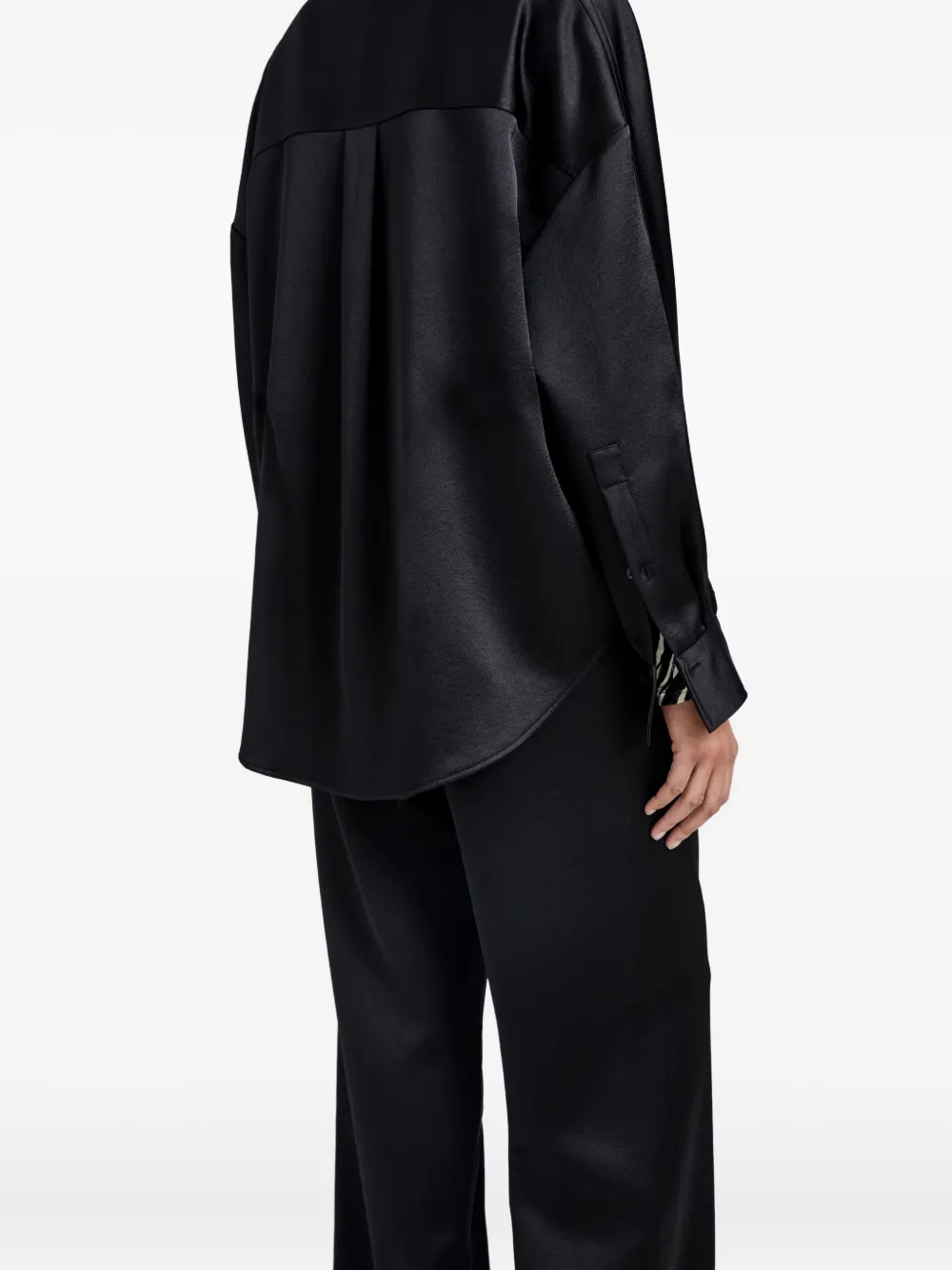 черный цвет с эффектом смятой ткани, застежка на пуговицы, длинные рукава, манжеты на пуговицах, кокетка сзади