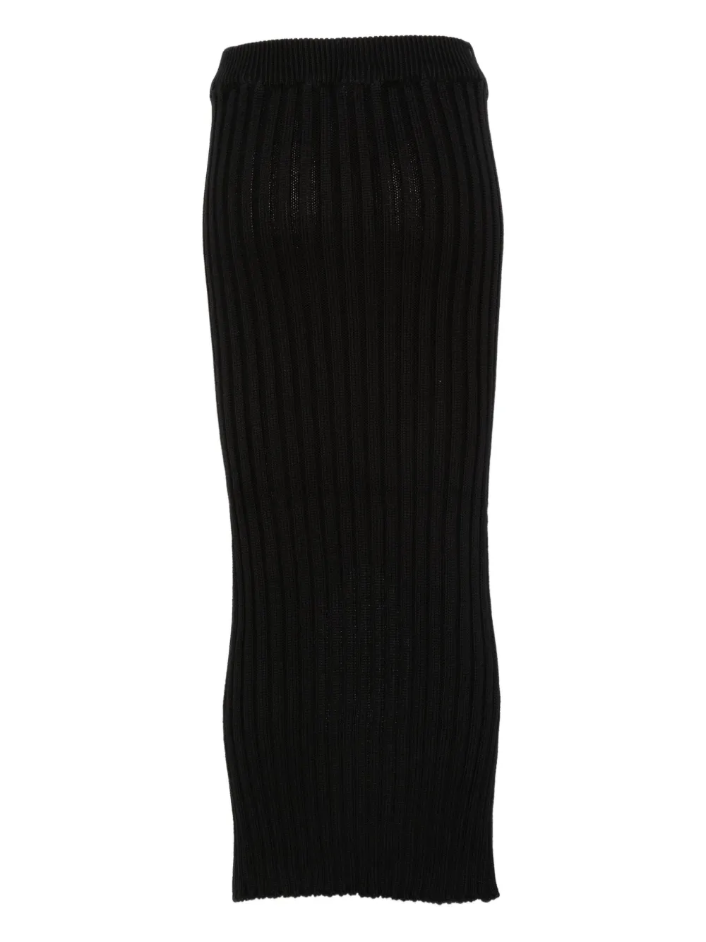 черная вязаная ребристая ткань, эластичный пояс, разрез на подоле