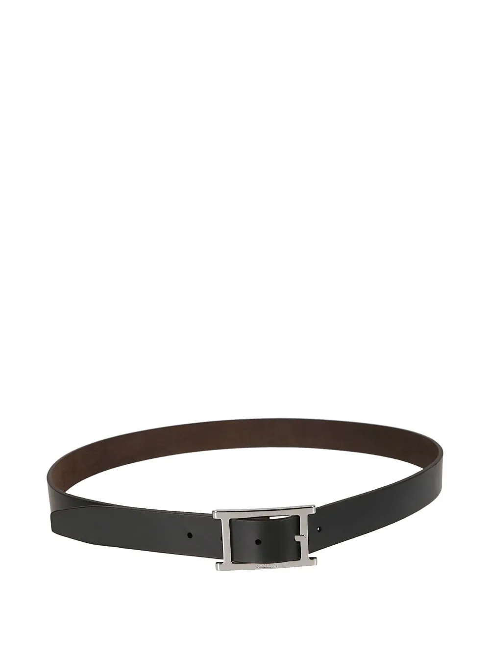 тёмно-коричневая кожа телёнка с пряжкой серебристого цвета
