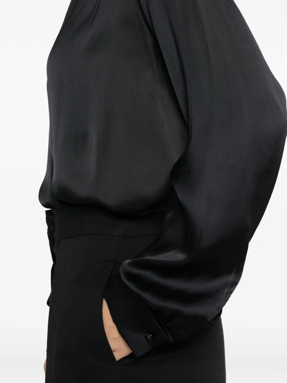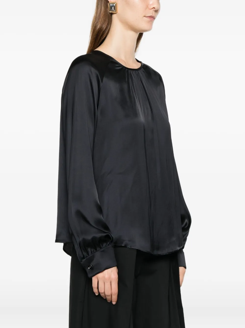 черный круглый вырез, длинные рукава, манжеты на пуговицах, тональная строчка