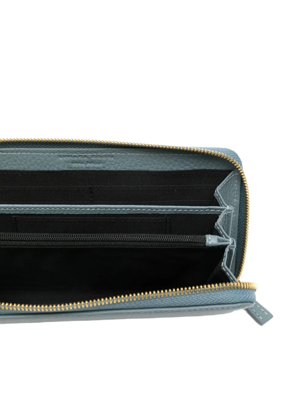 светло-голубой, застёжка-молния, зернистая текстура, фурнитура золотистого цвета