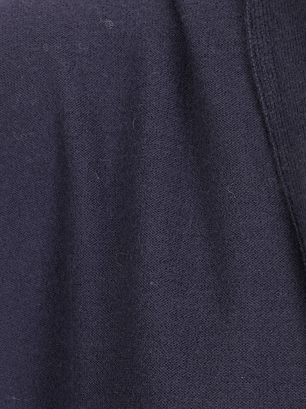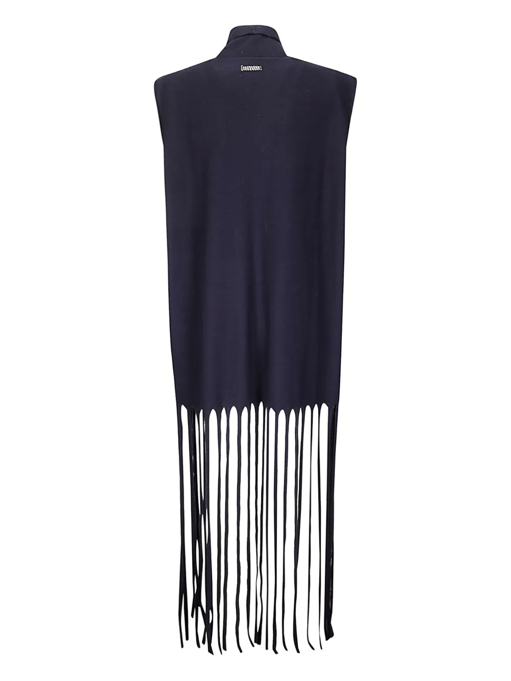 темно-синий кардиган с открытой передней частью и бахромой по краю