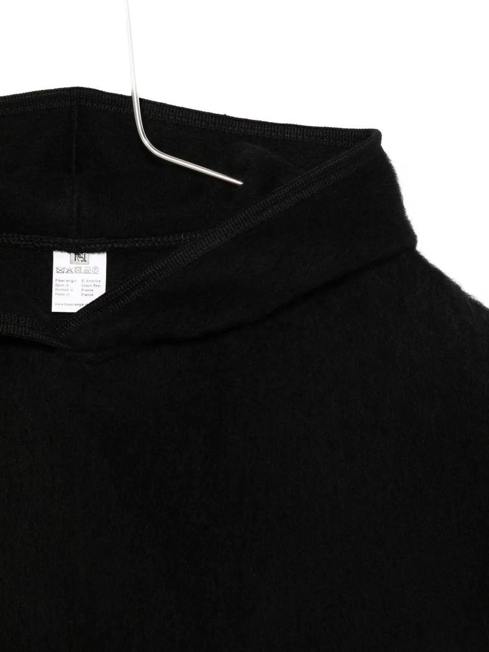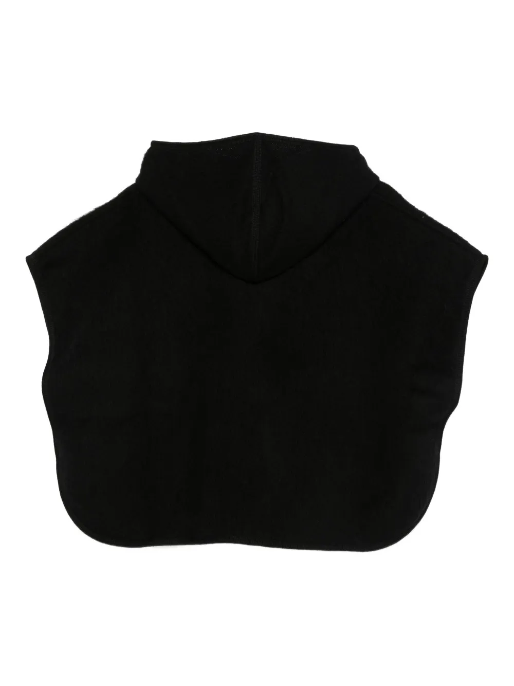 черный ворсистый шерстяной жилет с капюшоном и окантованными краями