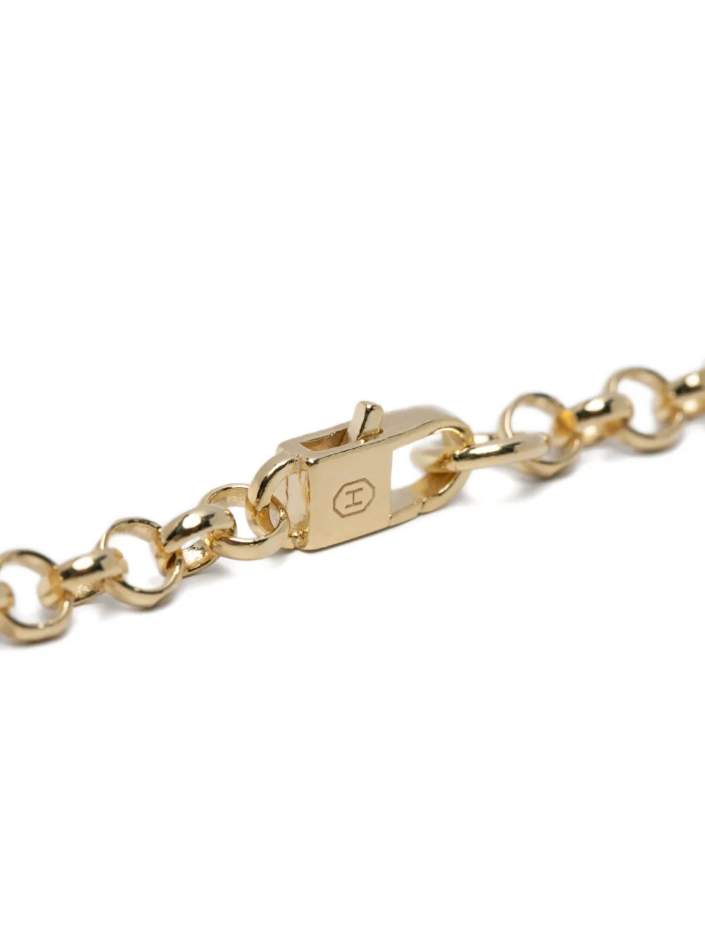 цепочка золотистого цвета с логотипом, застёжка-карабин, обычное ежедневное использование и воздействие внешних факторов могут уменьшить блеск драгоценных камней и золотых поверхностей.