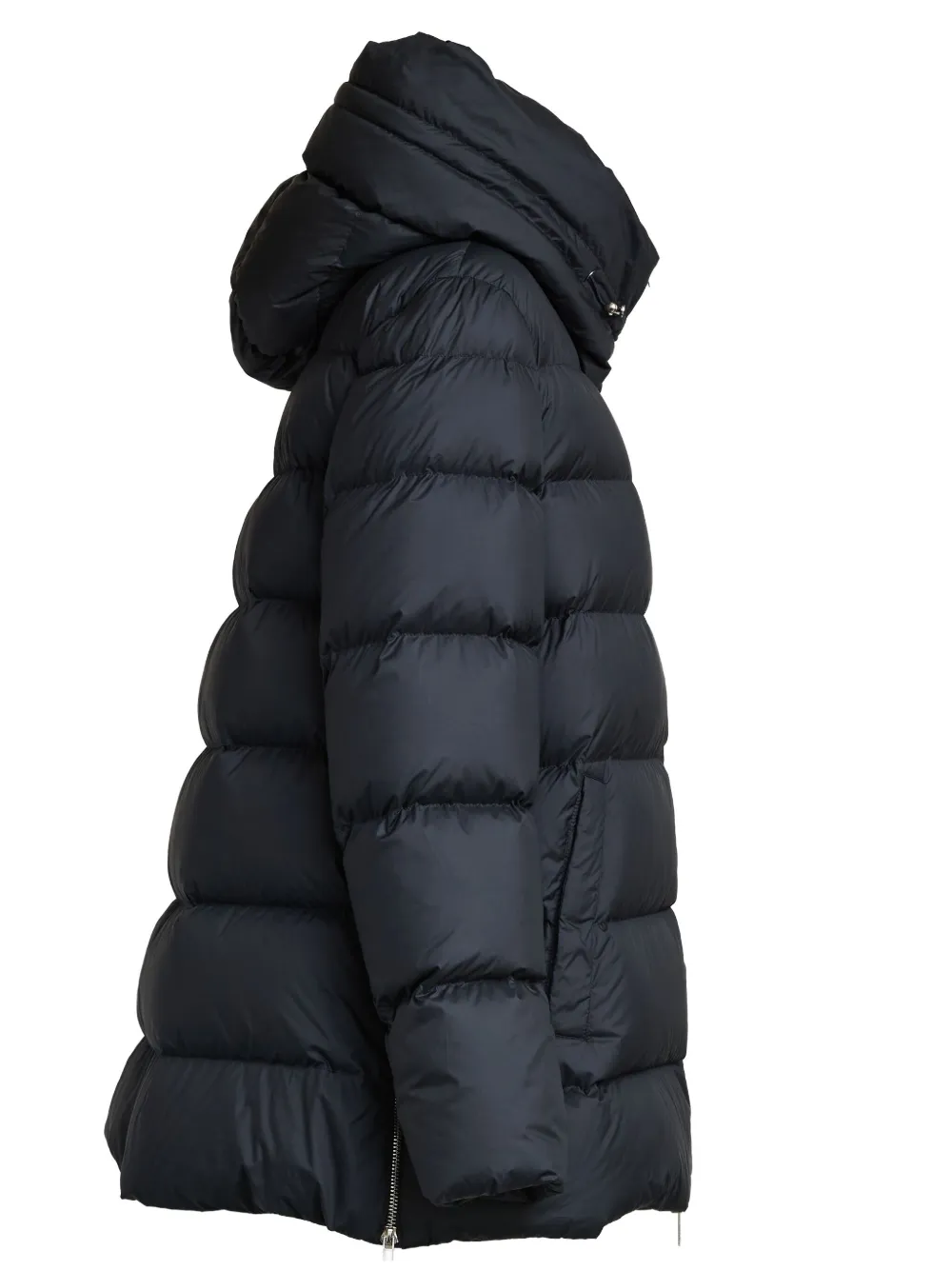 темно-синий стёганый дизайн, капюшон, застежка-молния, длинные рукава