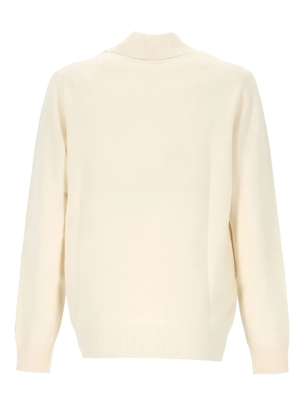 молочного цвета свитер с высоким воротником на молнии и длинными рукавами