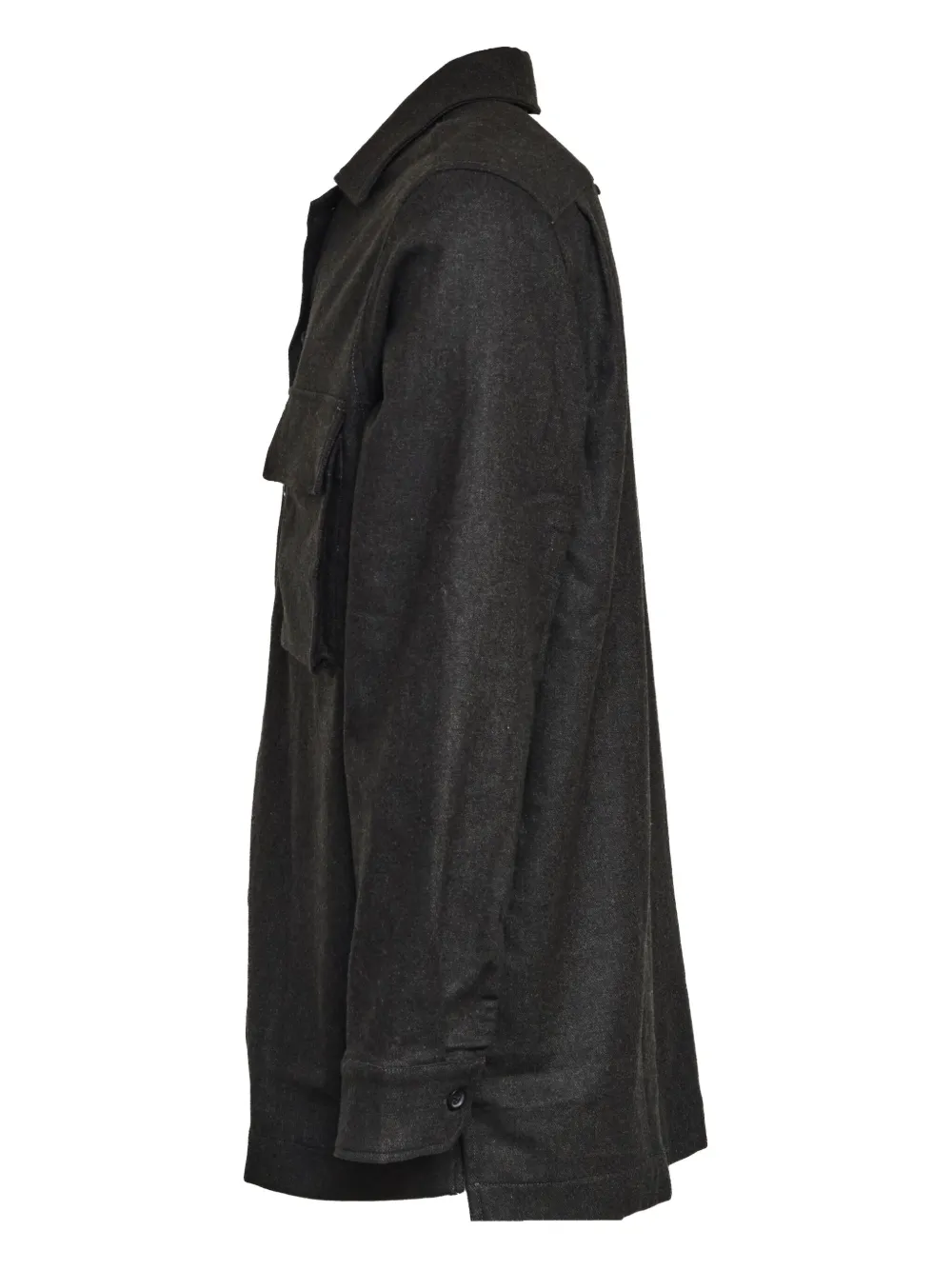 темно-серый цвет, застежка на пуговицы, длинные рукава, нагрудные карманы
