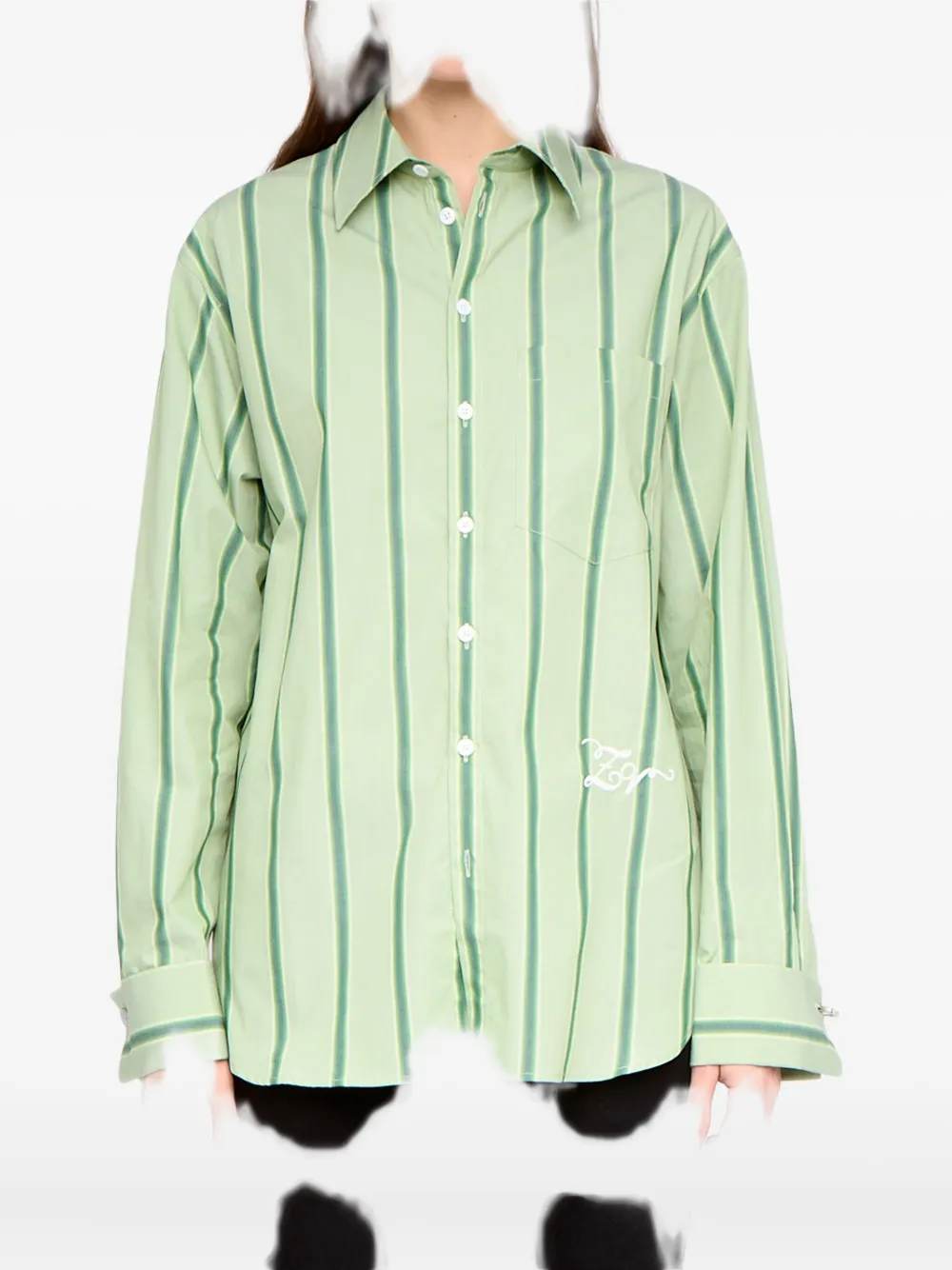 зелёная в полоску, нагрудный карман, застёжка на пуговицы, манжеты на пуговицах