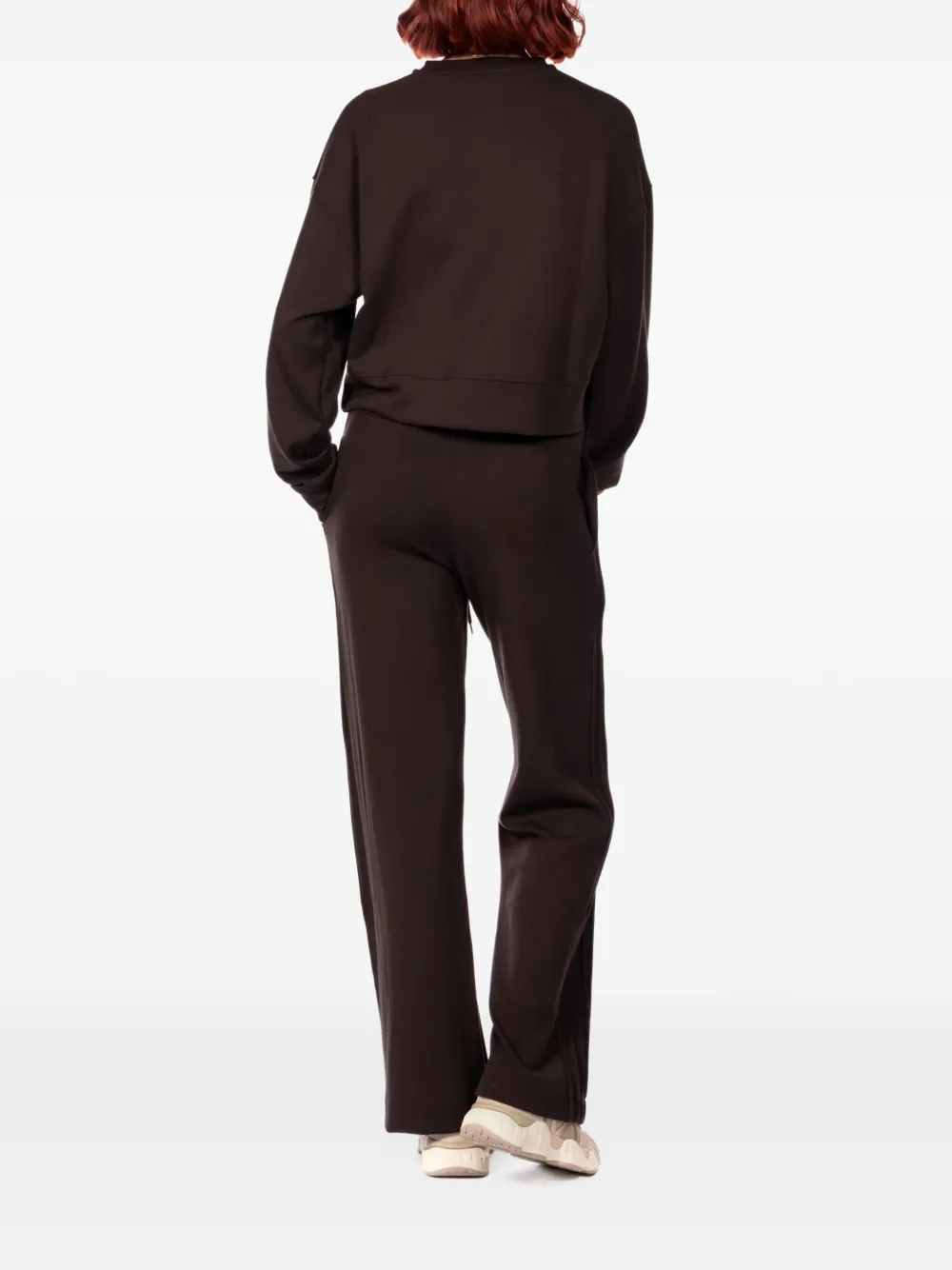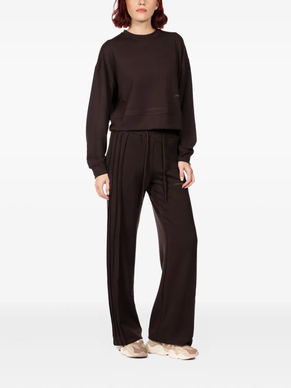 коричневые прямые брюки со шнурком и боковыми швами
