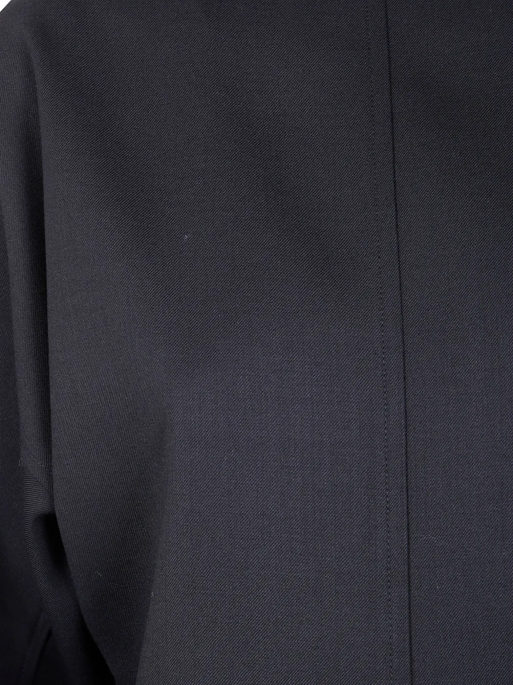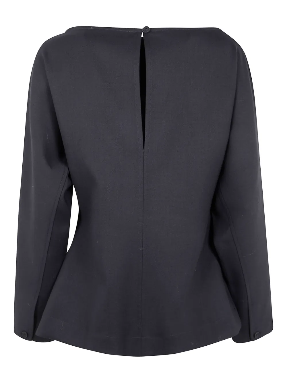 черный цвет, вырез-лодочка, длинные рукава, застежка на пуговицы сзади, прямой низ, однотонная строчка